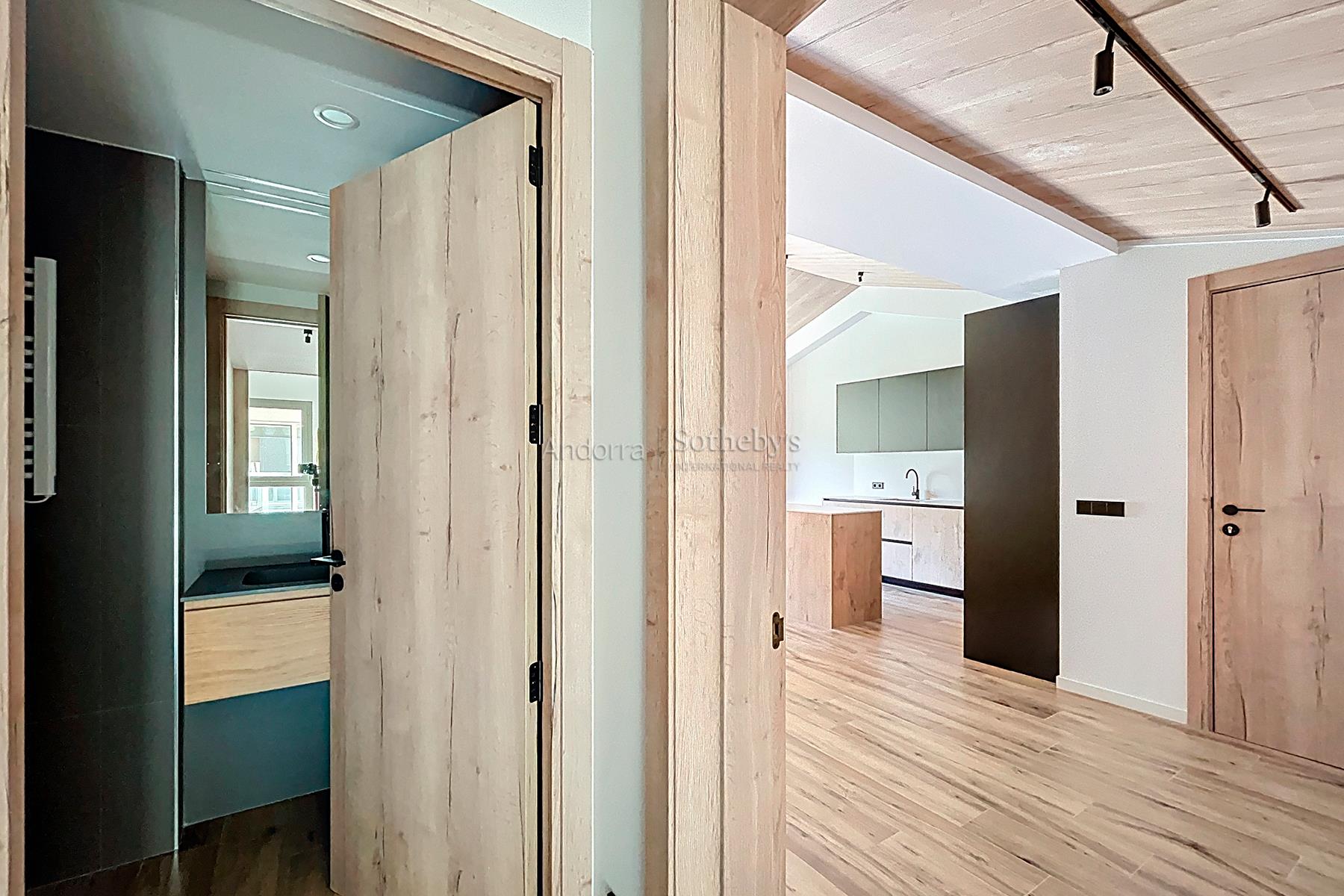 Descubre esta magnífica obra nueva ubicada en El Tarter. Con una superficie de 99,40 m2, esta propiedad ofrece un espacio moderno y espacioso para disfrutarlo al máximo. Con dos amplias habitaciones dobles, incluyendo una suite impresionante, este hogar es perfecto para aquellos que buscan comodidad y estilo. La cocina, integrada en el salón comedor, crea un ambiente acogedor y funcional. Desde aquí podrás acceder a una encantadora terraza de 8,95 m2 con vistas panorámicas al Valle de Canillo, y sol de tarde. Imagina disfrutar de las comidas exteriores o relajarte mientras contemplas las impresionantes vistas y las puestas de sol. El edificio cuenta con un box privado para dos coches, lo que brinda una comodidad adicional y permite tener tus vehículos protegidos del frío y la nieve. Esta propiedad está equipada con características de alta calidad, como iluminación LED de bajo consumo, suelo radiante y una elegante chimenea eléctrica. Además, cuenta con domótica que te permite controlar y gestionar fácilmente los sistemas del hogar desde su teléfono inteligente. Los electrodomésticos de primera calidad le ofrecen una experiencia culinaria excepcional, mientras que los suelos radiantes, y de gres porcelánico añaden un toque cálido, de sofisticación y durabilidad. La comunidad dispone de un spa y una zona de relax comunitario, donde podrás disfrutar de piscinas y jacuzzis, creando un ambiente de bienestar y relajación. Además un patio central con zona verde completa este entorno, proporcionando un espacio tranquilo y natural. No pierdas la oportunidad de vivir en esta maravillosa propiedad en El Tarter.