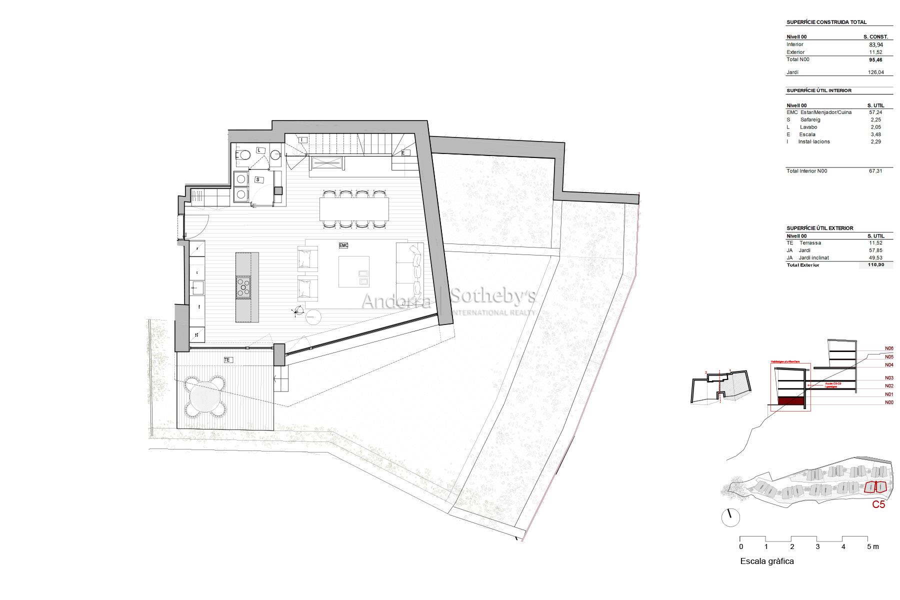 HABITATGE 5.2 Benvingut a la vostra nova llar situada en un entorn natural privilegiat a Els Vilars, Escaldes, on l'elegància es fon amb la bellesa del paisatge andorrà. Aquesta espectacular propietat, situada a pocs minuts del vibrant centre d'Andorra la Vella, ofereix un accés immediat a una àmplia gamma de serveis, comerços i àrees d'oci. Amb un disseny pensat per a la sostenibilitat, aquest duplex destaca per les seves generoses obertures, que permeten l'entrada de llum natural, creant així un ambient d'harmonia i serenor. Les impresionants vistes a les muntanyes i a Escaldes, juntament amb una orientació sud que assegura una excel·lent il·luminació al llarg del dia, fan d'aquest habitatge un veritable oasi de tranquil·litat. Aquesta propietat ocupa la planta baixa i la primera planta. Inclou tres còmodes dormitoris un en suite, un bany complet independent, un servei de convidats, un safareig i un ampli jardí amb accés directe des de la sala d'estar i el menjador. La planta baixa presenta una sala d'estar amb xemenèia de grans dimensions, separada de la cuina per una elegant illa que crea dues zones distintes en un sol espai. A la primera planta, els tres dormitoris ofereixen privacitat i confort. Amb un disseny orientat a l'estalvi energètic, aquesta villa no només proporciona comoditat, sinó que també compta amb jardins i zones verdes que fomenten un estil de vida íntim i plaer. Descobriu la veritable essència de la vida andorrana en aquest duplex únic, on cada detall ha estat pensat per garantir el màxim confort i una vida plena d'harmonia i bellesa.Característiques