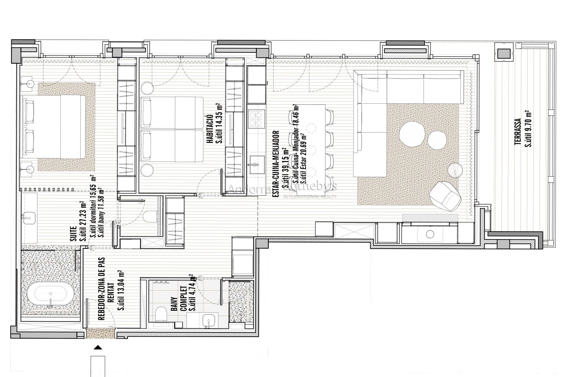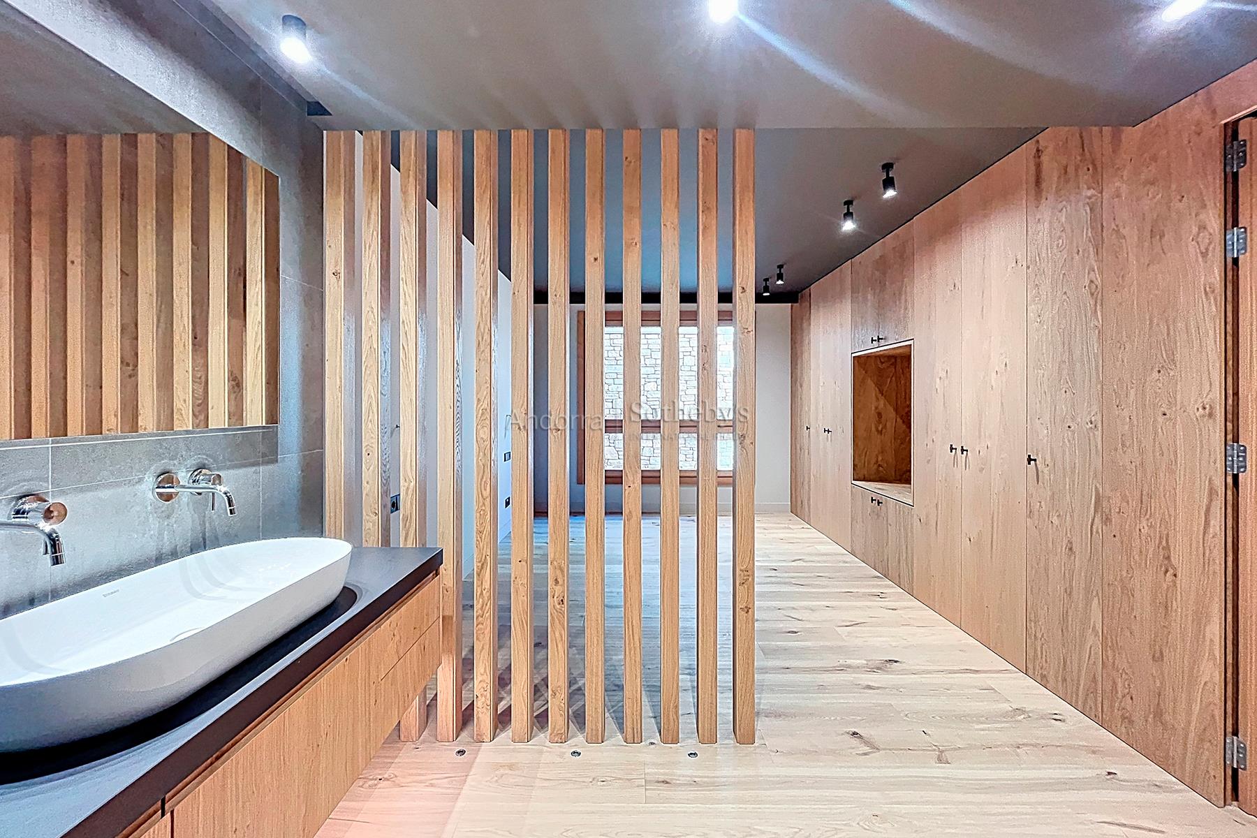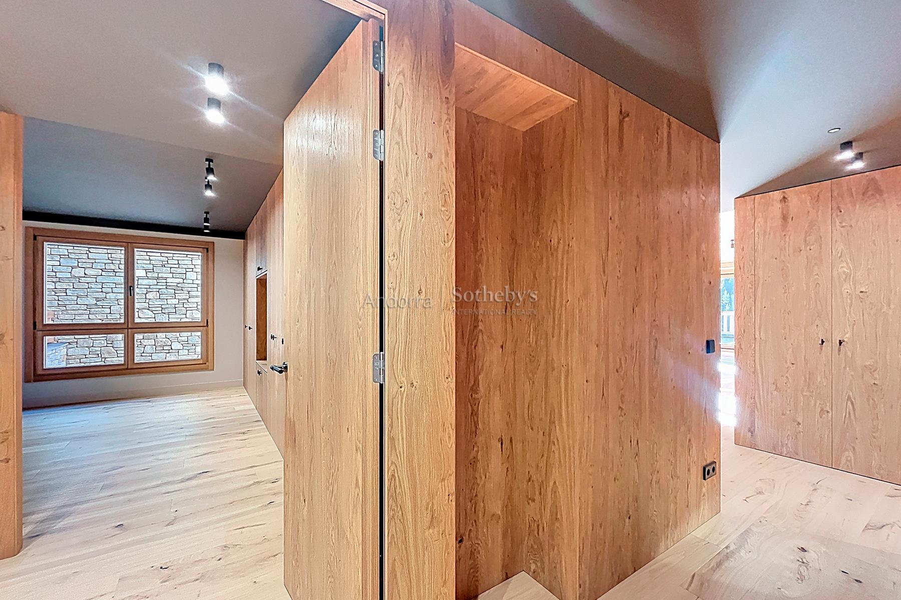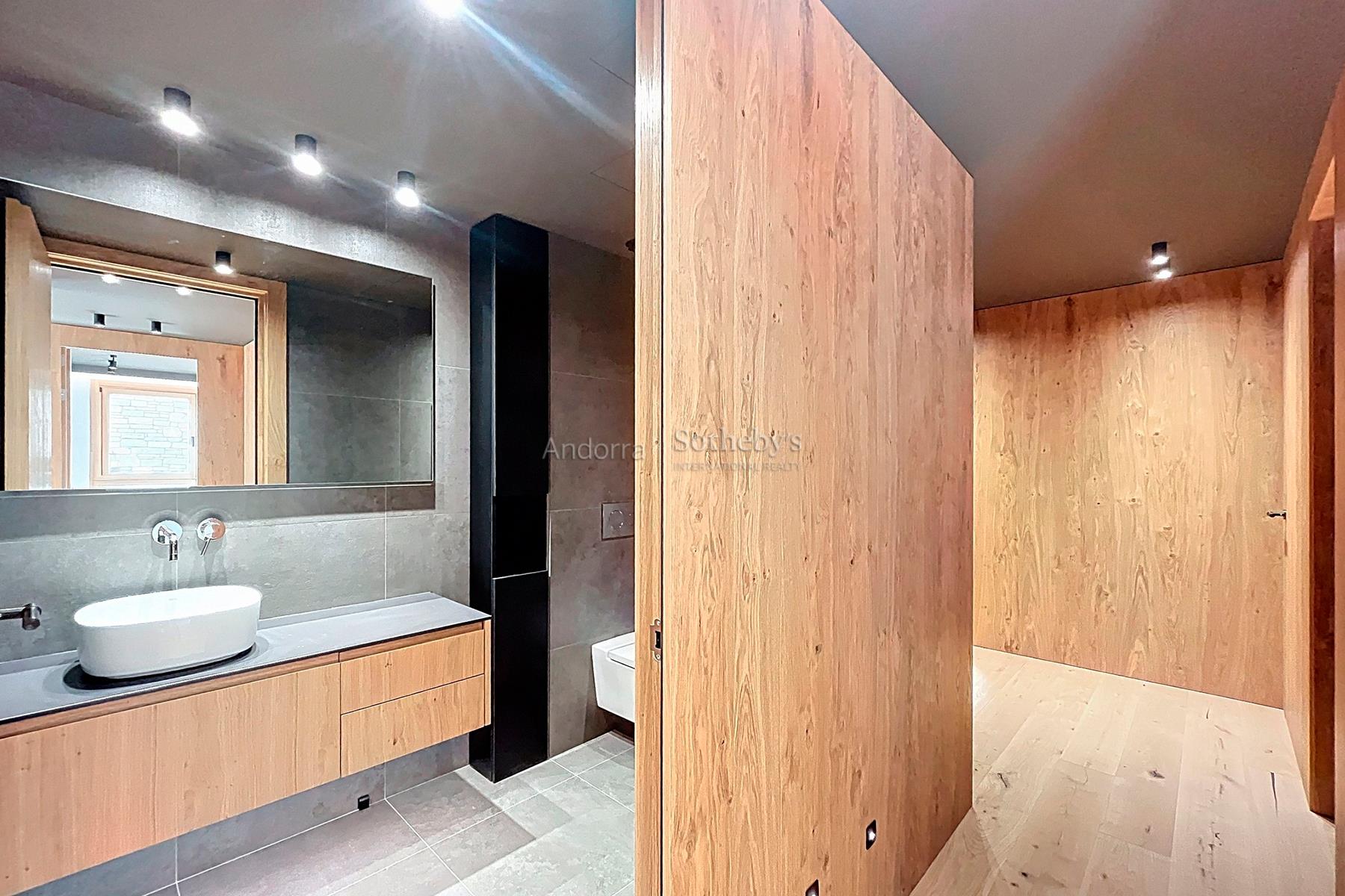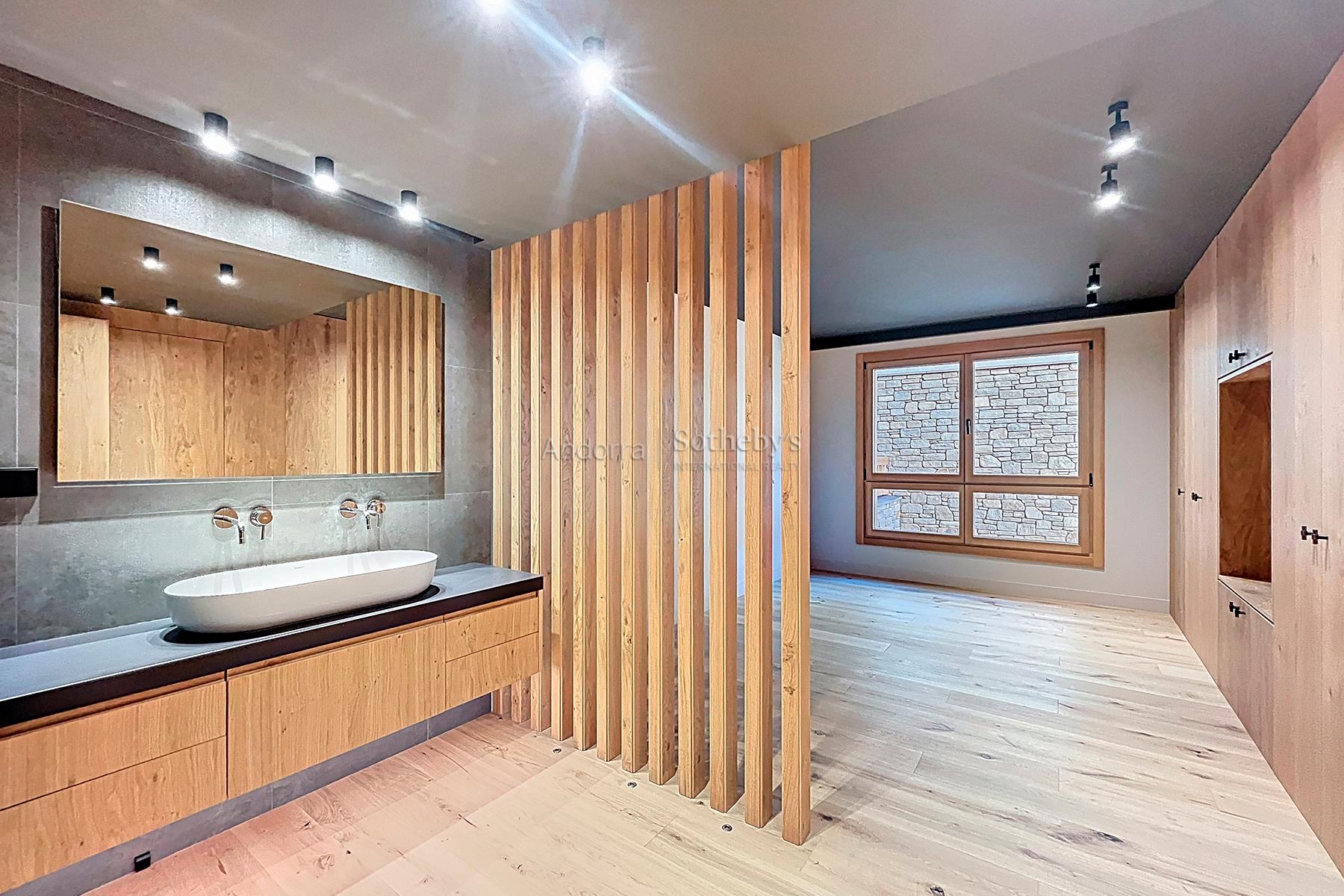 Welcome to a true luxury retreat in the heart of the majestic Pyrenees, just steps from the breathtaking ski slopes of the charming village of Soldeu. This exclusive apartment offers an unparalleled experience, where nature blends seamlessly with contemporary design, creating the perfect space for those seeking serenity and sophistication. With a meticulously designed area of 120 m², this property stands out for its structure that breathes nature, using native pine wood and local stone that harmoniously integrates into the surrounding landscape. The open-concept kitchen connects to a spacious living room, fostering memorable moments in a cozy and elegant environment. This apartment features two bedrooms, including a master suite and a double room, as well as two full bathrooms (one of them in the suite). Every corner has been thoughtfully conceived to ensure maximum comfort and functionality. The 9 m² terrace allows residents to enjoy spectacular views of the Grandvalira ski slopes and revel in the beauty of each season. Large, strategically oriented windows flood the space with natural light, immersing each room in the calm and majesty of the snowy peaks. Additionally, this magnificent apartment includes a private parking space for two vehicles, offering convenience and easy access at all times. Experience the magic of this unique space, where nature is not only observed but felt and celebrated. An exceptional place for those who wish to immerse themselves in the pure essence of mountain life in the heart of the Andorran peaks.Features
