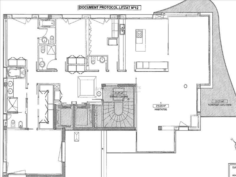 Se presenta este ático singular de 215,05 m², ubicado en pleno centro de Escaldes-Engordany, que ocupa la totalidad de la planta, ofreciendo un nivel excepcional de privacidad, amplitud y luminosidad. Gracias a sus cuatro orientaciones, con clara predominancia sur, la propiedad disfruta de una extraordinaria entrada de luz natural durante todo el día. La zona de noche se distribuye en cuatro elegantes dormitorios, tres de ellos en suite con baño completo, concebidos para garantizar el máximo confort. El cuarto dormitorio dispone de acceso inmediato a un baño completo independiente. Adicionalmente, la vivienda cuenta con un lavabo de cortesía. La zona de día se articula en torno a un sofisticado salón-comedor semiabierto, conectado a la cocina mediante una puerta corredera acristalada de diseño, que permite integrar ambos espacios o independizarlos, configurando una cocina tipo office de alta funcionalidad y estética contemporánea. La propiedad dispone de dos exclusivas terrazas privadas: una de 21,21 m² vinculada a la zona de salón-comedor y cocina, y una impresionante terraza frontal de 39 m² con orientación sur, ideal para disfrutar de momentos al aire libre con total privacidad. Entre sus características más distinguidas destaca el acceso directo mediante ascensor privado al interior de la vivienda, tanto desde el vestíbulo principal como desde el aparcamiento, mediante sistema de acceso con chip, aportando un elevado nivel de seguridad, discreción y confort. La propiedad se completa con dos amplias plazas de aparcamiento, incluidas. Una residencia única y exclusiva, que combina ubicación prime, diseño, privacidad y prestaciones de alto nivel, pensada para quienes buscan una vivienda de representación en una de las zonas más prestigiosas de Andorra.Características