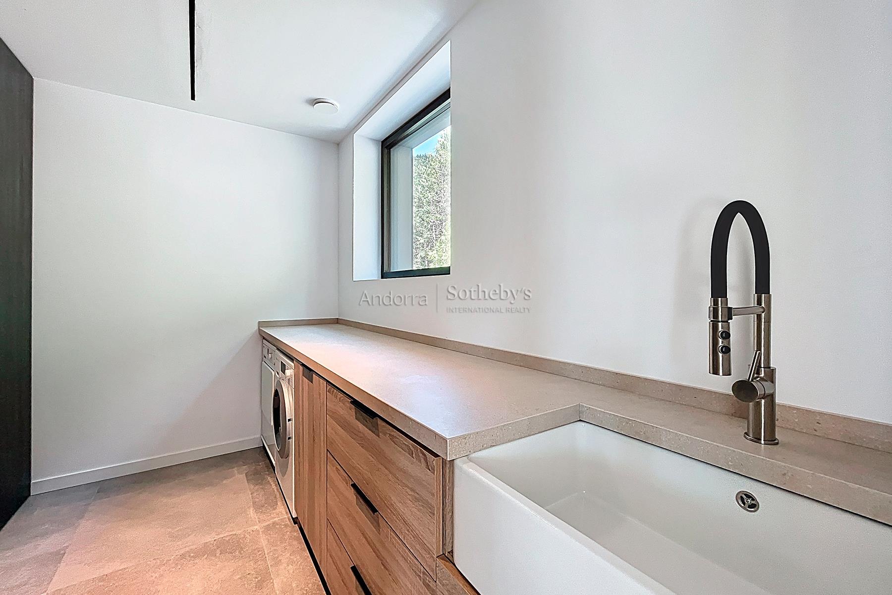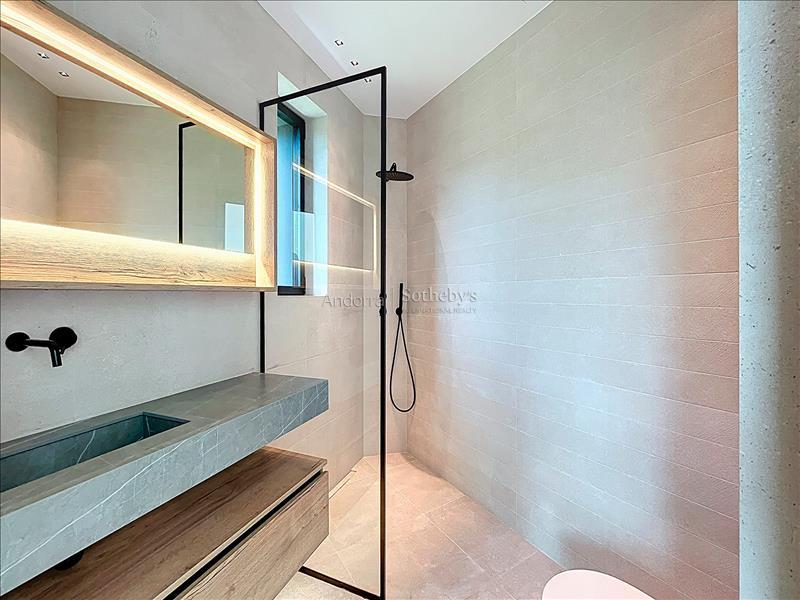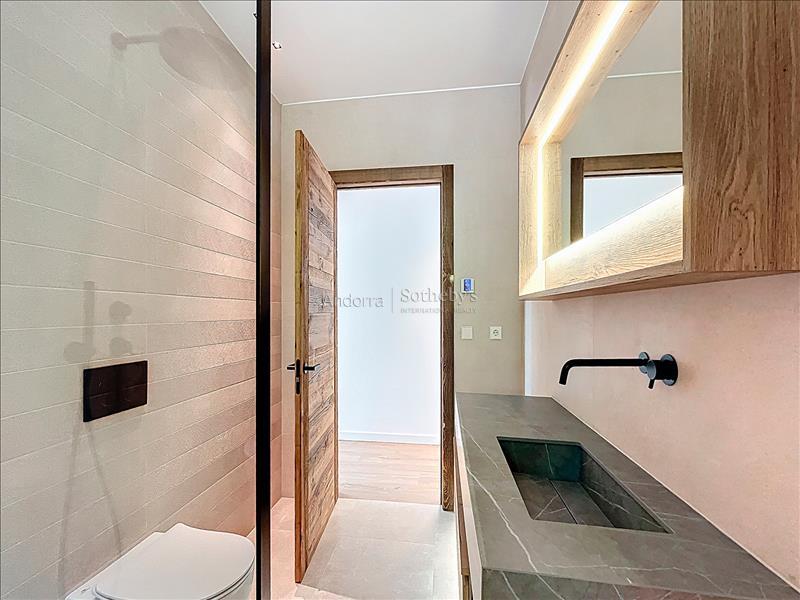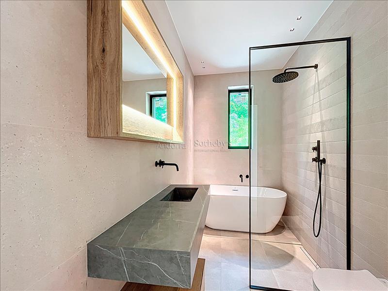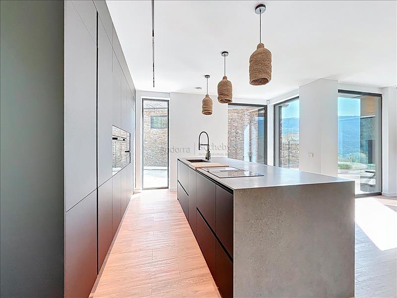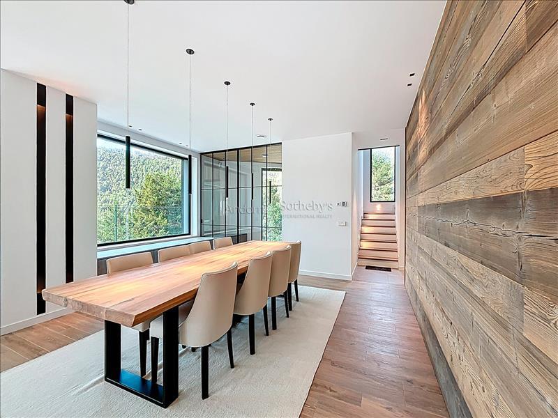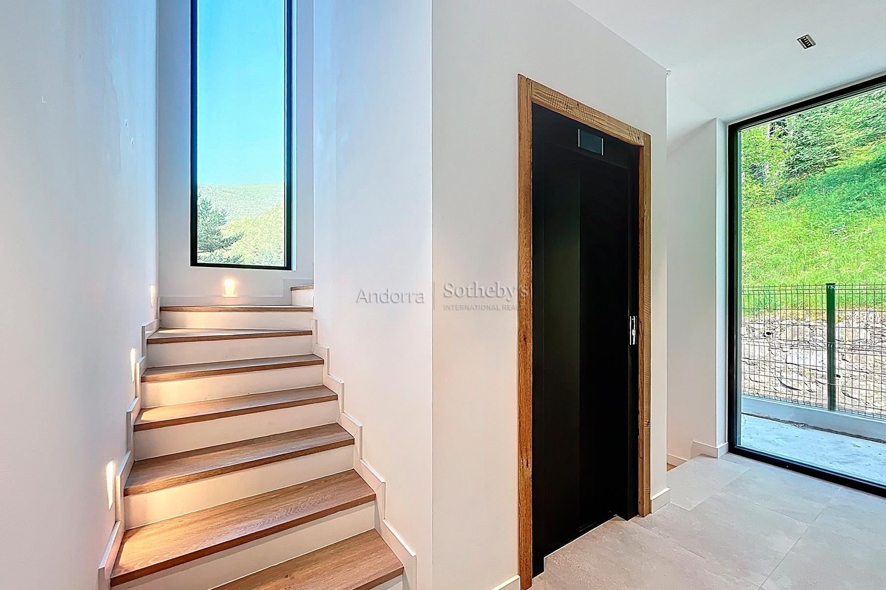 Situé dans un environnement paisible, entouré de paysages naturels, ce chalet sur trois étages allie sophistication et fonctionnalité dans un cadre privilégié. Il présente un design contemporain avec des finitions haut de gamme et de grandes fenêtres qui inondent chaque espace de lumière naturelle. Sa structure optimise le confort et le style de vie, avec un intérieur chaleureux et une disposition verticale pratique. Au premier étage, se trouve un salon-salle à manger élégant et lumineux, avec une cheminée suspendue qui crée une ambiance chaleureuse et accueillante. Cet espace, séparé de la zone de repas, dispose d'une grande table idéale pour des réunions en famille ou entre amis. La cuisine moderne et entièrement équipée s’ouvre sur un coin repas informel, complété par une buanderie spacieuse et un bureau, parfaits pour travailler ou lire. De plus, cette étage comprend une grande terrasse avec jardin, encore en phase de finition, idéale pour profiter de l’extérieur et des vues. Le deuxième étage abrite la zone nuit, avec une suite parentale avec salle de bain attenante à douche, deux chambres doubles partageant une salle de bain avec douche et baignoire, ainsi qu'une somptueuse suite principale avec dressing, garantissant espace et intimité à toute la famille. Au total, la propriété dispose de quatre salles de bain, offrant un confort maximal. L'abondance de lumière naturelle grâce aux grandes fenêtres crée un environnement lumineux et convivial. Le chalet est équipé d’un ascenseur facilitant l’accès à tous les étages, apportant confort et accessibilité. Le niveau du garage peut accueillir 5 ou 6 voitures et comprend des espaces pour la technicité, une cave ou un espace ski, ajoutant à la fonctionnalité et à la valeur de la propriété. Ce chalet à Anyós représente une opportunité exceptionnelle pour ceux qui recherchent une résidence exclusive, fonctionnelle et entourée par la nature, dans l’un des lieux les plus privilégiés de la Vallée d’Andorre.Caractéristiques