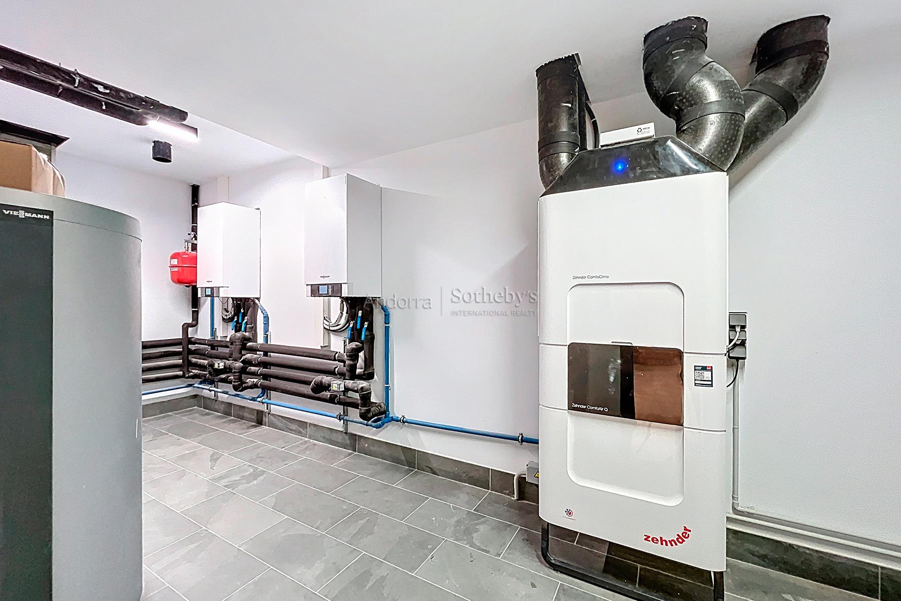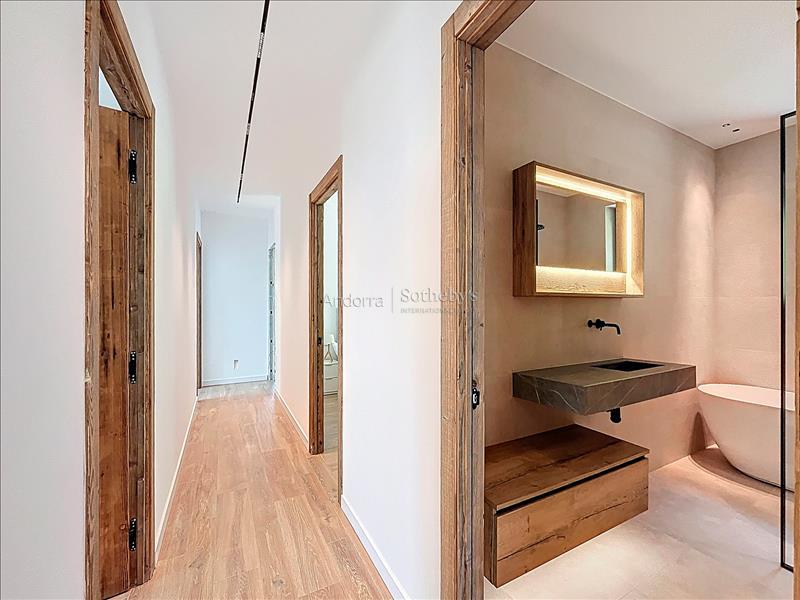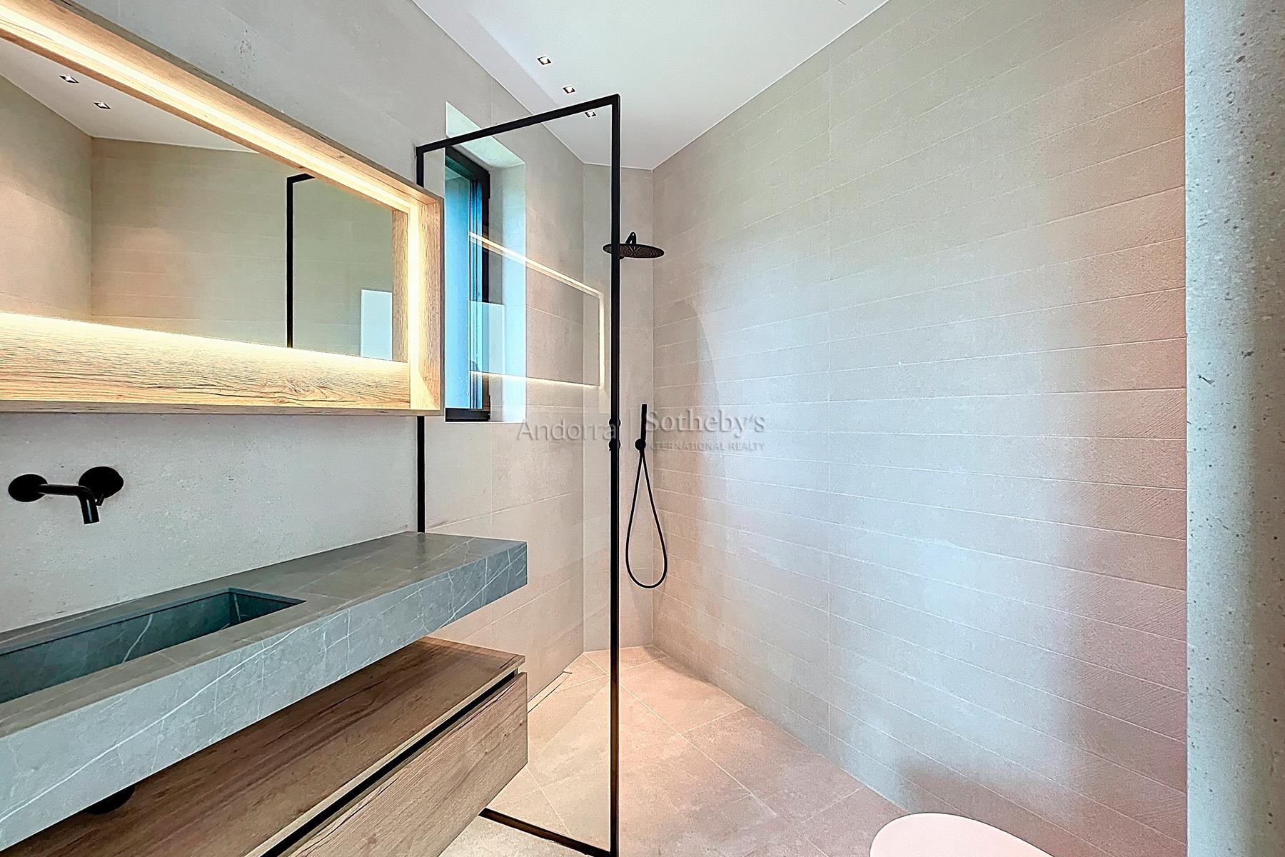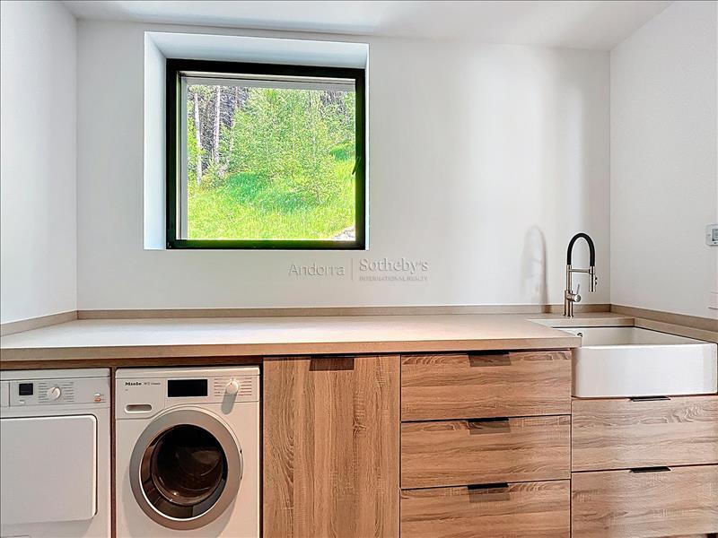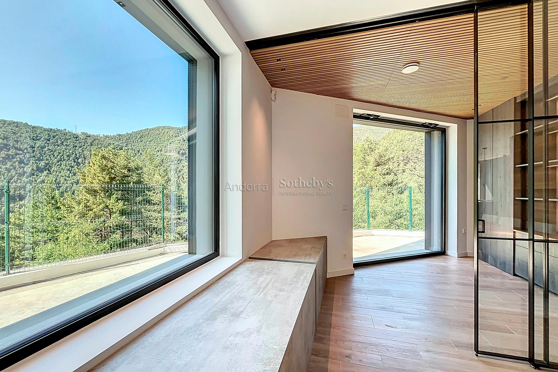 Situé dans un environnement paisible, entouré de paysages naturels, ce chalet sur trois étages allie sophistication et fonctionnalité dans un cadre privilégié. Il présente un design contemporain avec des finitions haut de gamme et de grandes fenêtres qui inondent chaque espace de lumière naturelle. Sa structure optimise le confort et le style de vie, avec un intérieur chaleureux et une disposition verticale pratique. Au premier étage, se trouve un salon-salle à manger élégant et lumineux, avec une cheminée suspendue qui crée une ambiance chaleureuse et accueillante. Cet espace, séparé de la zone de repas, dispose d'une grande table idéale pour des réunions en famille ou entre amis. La cuisine moderne et entièrement équipée s’ouvre sur un coin repas informel, complété par une buanderie spacieuse et un bureau, parfaits pour travailler ou lire. De plus, cette étage comprend une grande terrasse avec jardin, encore en phase de finition, idéale pour profiter de l’extérieur et des vues. Le deuxième étage abrite la zone nuit, avec une suite parentale avec salle de bain attenante à douche, deux chambres doubles partageant une salle de bain avec douche et baignoire, ainsi qu'une somptueuse suite principale avec dressing, garantissant espace et intimité à toute la famille. Au total, la propriété dispose de quatre salles de bain, offrant un confort maximal. L'abondance de lumière naturelle grâce aux grandes fenêtres crée un environnement lumineux et convivial. Le chalet est équipé d’un ascenseur facilitant l’accès à tous les étages, apportant confort et accessibilité. Le niveau du garage peut accueillir 5 ou 6 voitures et comprend des espaces pour la technicité, une cave ou un espace ski, ajoutant à la fonctionnalité et à la valeur de la propriété. Ce chalet à Anyós représente une opportunité exceptionnelle pour ceux qui recherchent une résidence exclusive, fonctionnelle et entourée par la nature, dans l’un des lieux les plus privilégiés de la Vallée d’Andorre.Caractéristiques