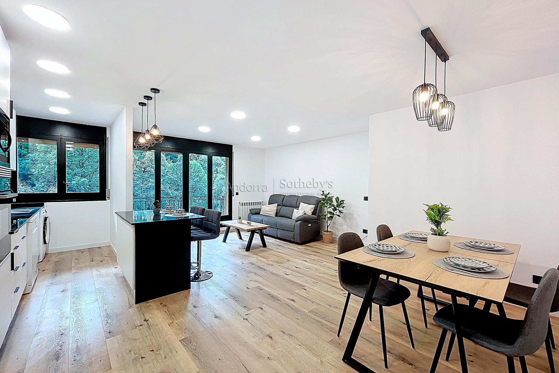 Se presenta a la venta este piso completamente reformado y totalmente equipado de 78 m², situado en la tranquila y natural zona de Engolasters, a pocos minutos del centro de Escaldes-Engordany. Una propiedad que combina diseño moderno, funcionalidad y confort en un entorno único. La vivienda cuenta con dos habitaciones dobles y dos baños completos, perfectamente distribuidos para ofrecer comodidad y privacidad. La zona de día dispone de un amplio salón-comedor con cocina abierta, un espacio luminoso y acogedor que conecta directamente con una terraza de 8 m², ideal para disfrutar de las vistas y la tranquilidad de la montaña. El piso, amueblado y equipado con todo detalle, se completa con una plaza de aparcamiento de 17 m² y un trastero, aportando funcionalidad y espacio adicional para almacenamiento. Una oportunidad ideal para quienes buscan una residencia moderna, luminosa y lista para entrar a vivir, en un entorno natural sin renunciar a la proximidad y los servicios de Escaldes-Engordany.Características