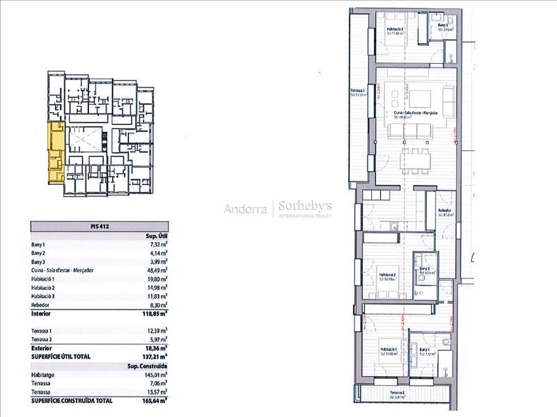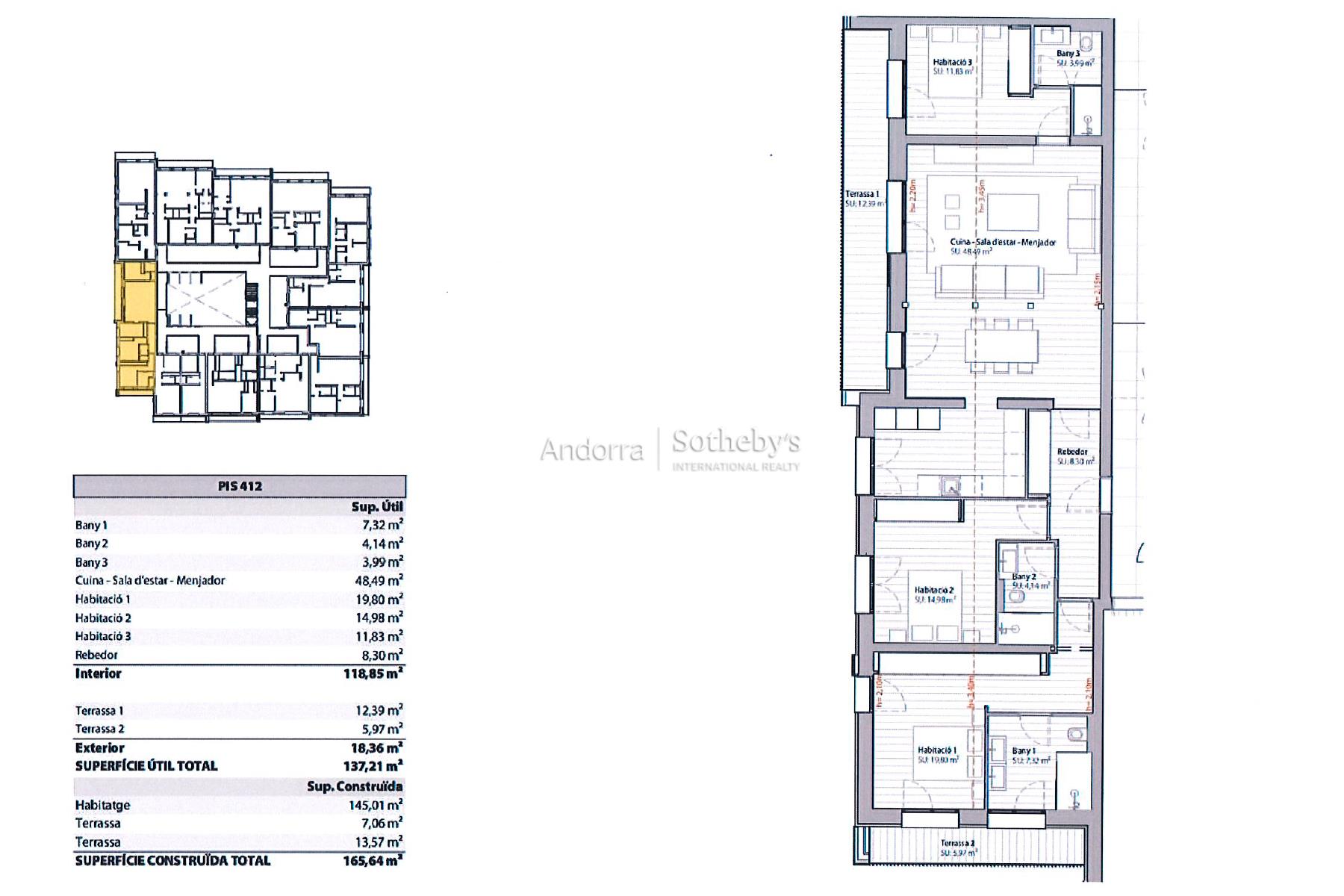 Descubra esta magnífica nova obra localizada em El Tarter. Com uma área de 165,64 m2, este imóvel oferece um espaço moderno e amplo para desfrutar ao máximo. A cozinha, integrada à sala, cria um ambiente aconchegante e funcional. A partir daqui tem acesso a um encantador terraço de 20,63 m2 com vista. Com três espaçosos quartos duplos, incluindo uma deslumbrante suite, e três casas de banho completas, esta casa é perfeita para quem procura conforto e estilo. O edifício dispõe de garagem privativa para dois carros, o que proporciona conforto adicional e permite ter os seus veículos protegidos do frio e da neve. Esta propriedade está equipada com características de alta qualidade, incluindo iluminação LED com eficiência energética, piso radiante e uma elegante lareira eléctrica. Além disso, possui automação residencial que permite controlar e gerenciar facilmente os sistemas domésticos a partir do seu smartphone. Os eletrodomésticos de alta qualidade oferecem uma experiência culinária excepcional, enquanto os pisos radiantes e o grés porcelanato acrescentam um toque de calor, sofisticação e durabilidade. O condomínio dispõe de um spa e de uma zona de relaxamento comunitária, onde poderá desfrutar de piscinas e jacuzzis, criando um ambiente de bem-estar e relaxamento. Além disso, um pátio central com área verde completa este ambiente, proporcionando um espaço tranquilo e natural. Não perca a oportunidade de morar nesta maravilhosa propriedade em El Tarter.Características