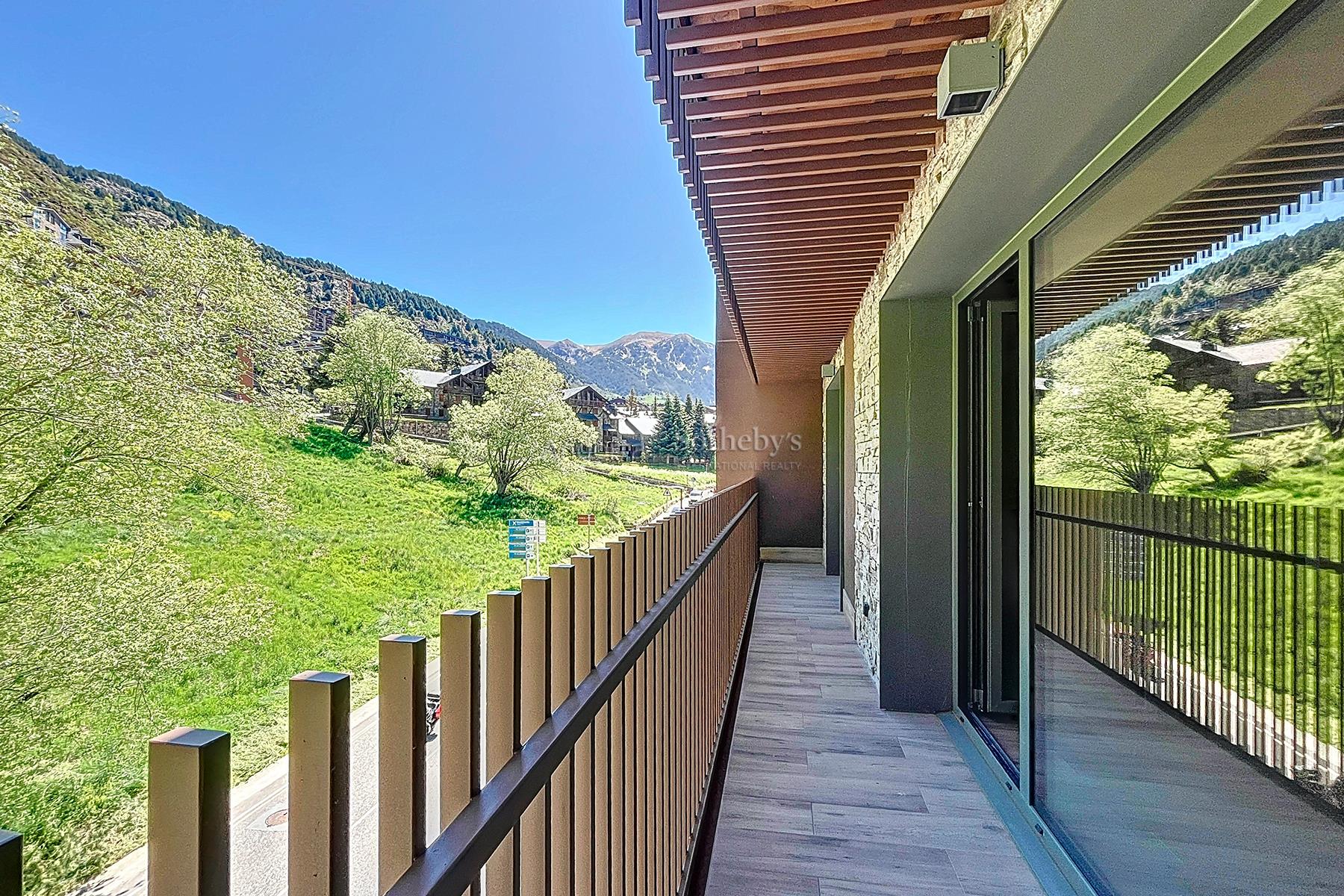 Descubre esta magnífica obra nueva ubicada en El Tarter. Con una superficie de 101,81 m2, esta propiedad ofrece un espacio moderno y espacioso para disfrutarlo al máximo. Con dos amplias habitaciones dobles, incluyendo una suite impresionante, este hogar es perfecto para aquellos que buscan comodidad y estilo. La cocina, integrada en el salón comedor, crea un ambiente acogedor y funcional. Desde aquí podrás acceder a una encantadora terraza de 7,87m2 con vistas. El edificio cuenta con un box privado para un coche, lo que brinda una comodidad adicional y permite tener tus vehículos protegidos del frío y la nieve. Esta propiedad está equipada con características de alta calidad, como iluminación LED de bajo consumo, suelo radiante y una elegante chimenea eléctrica. Además, cuenta con domótica que te permite controlar y gestionar fácilmente los sistemas del hogar desde su teléfono inteligente. Los electrodomésticos de primera calidad le ofrecen una experiencia culinaria excepcional, mientras que los suelos radiantes, y de gres porcelánico añaden un toque cálido, de sofisticación y durabilidad. La comunidad dispone de un spa y una zona de relax comunitario, donde podrás disfrutar de piscinas y jacuzzis, creando un ambiente de bienestar y relajación. Además un patio central con zona verde completa este entorno, proporcionando un espacio tranquilo y natural. No pierdas la oportunidad de vivir en esta maravillosa propiedad en El Tarter.Características