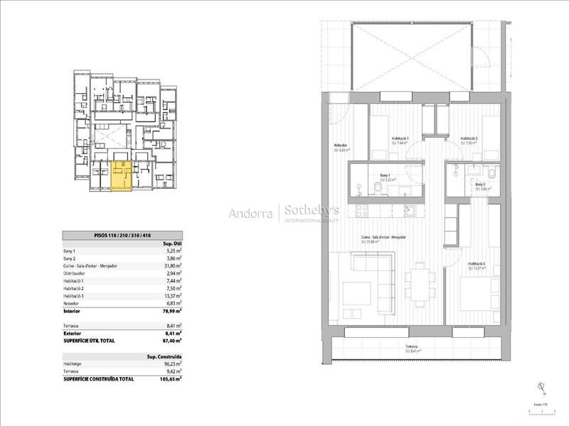 Descubre esta magnífica obra nueva ubicada en El Tarter. Con una superficie de 105,64 m², esta propiedad ofrece un espacio moderno y espacioso para disfrutar al máximo. La cocina, integrada en el salón-comedor, crea un ambiente acogedor y funcional. Desde aquí podrás acceder a una encantadora terraza de 9,42 m² con vistas. Con una suite, 2 habitaciones individuales y dos baños completos, esta vivienda es perfecta para aquellos que buscan comodidad y estilo. El edificio cuenta con un parking privado para dos coches, lo que brinda una comodidad adicional y te permite tener tu vehículo protegido del frío y la nieve. Esta propiedad está equipada con características de alta calidad, como iluminación LED de bajo consumo, suelo radiante y una elegante chimenea eléctrica. Además, dispone de domótica que te permite controlar y gestionar fácilmente los sistemas del hogar desde el teléfono inteligente. Los electrodomésticos de primera calidad ofrecen una experiencia culinaria excepcional, mientras que los suelos radiantes y de gres porcelánico aportan un toque cálido, sofisticado y duradero. La comunidad dispone de un spa y una zona de relax comunitaria, donde podrás disfrutar de piscinas y jacuzzis, creando un ambiente de bienestar y relajación. Además, un patio central con zona verde completa este entorno, proporcionando un espacio tranquilo y natural. No pierdas la oportunidad de vivir en esta maravillosa propiedad en El Tarter.Características