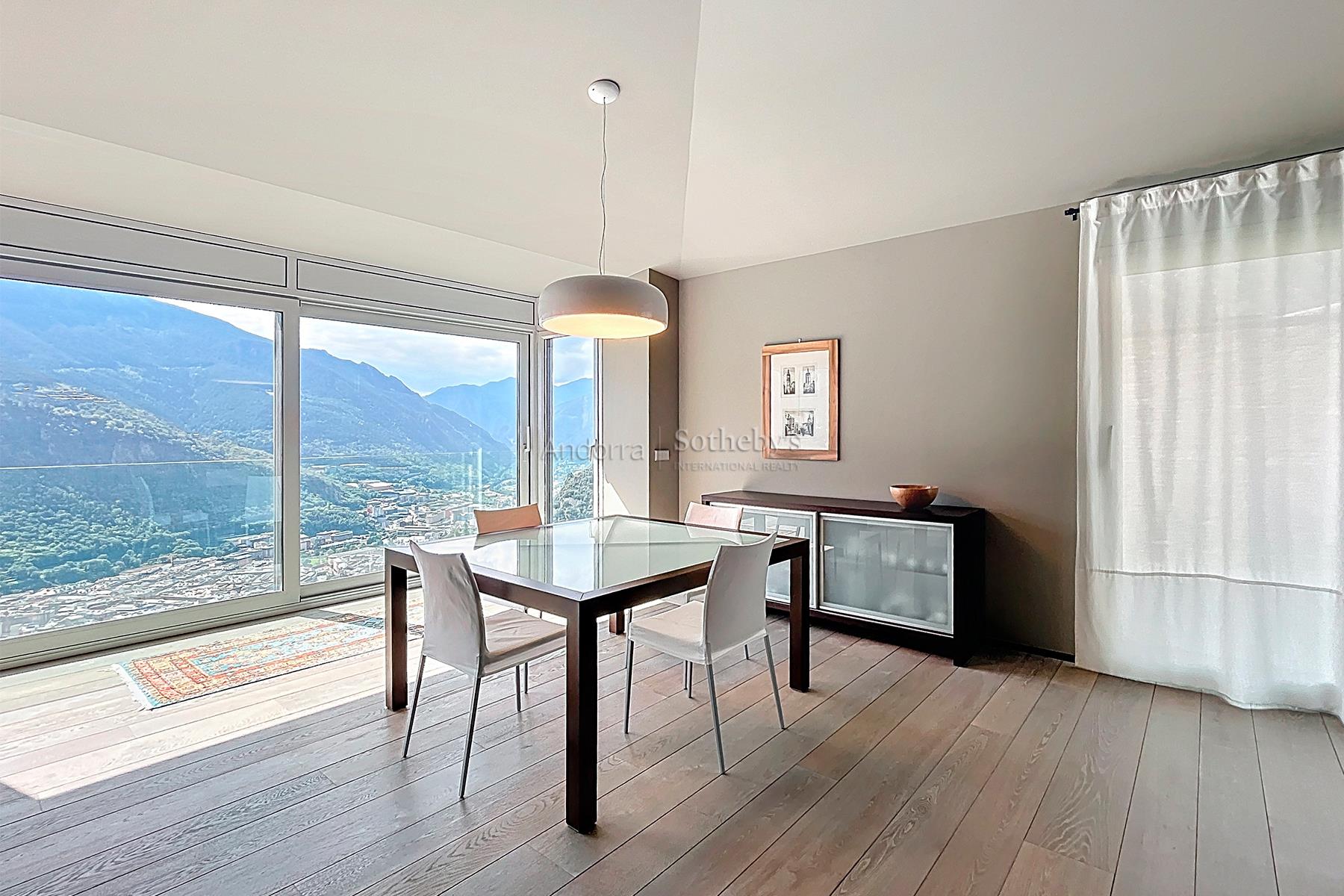 Descubra este espectacular ático en Can Diumenge, Escaldes-Engordany, de casi 300 m². Esta vivienda única combina amplitud, luminosidad y unas vistas panorámicas espectaculares de todo Escaldes y Andorra, con orientación sur que garantiza sol durante todo el día y un ambiente cálido y acogedor. El espacio central está diseñado en un salón, comedor y cocina integrados, separados por una elegante chimenea que añade calidez y carácter. La cocina, moderna y funcional, dispone de un anexo con lavadero amplio, zona de despensa y un servicio de cortesía. La zona de noche está formada por tres habitaciones: una suite de grandes dimensiones con baño privado, vestidor y terraza; una segunda habitación, también con acceso a la terraza, que se divide en un espacio para dormir y un despacho con altillo; y una tercera habitación doble que comparte un baño completo con el resto de la zona. El propietario dispone de dos garajes cerrados, con capacidad para hasta seis coches, garantizando espacio y comodidad para toda la familia y visitantes. Este ático constituye una opción excelente para quienes buscan una residencia exclusiva, con espacios amplios, vistas privilegiadas y una ubicación privilegiada en Escaldes-Engordany. Una oportunidad única para vivir con confort y estilo.Características