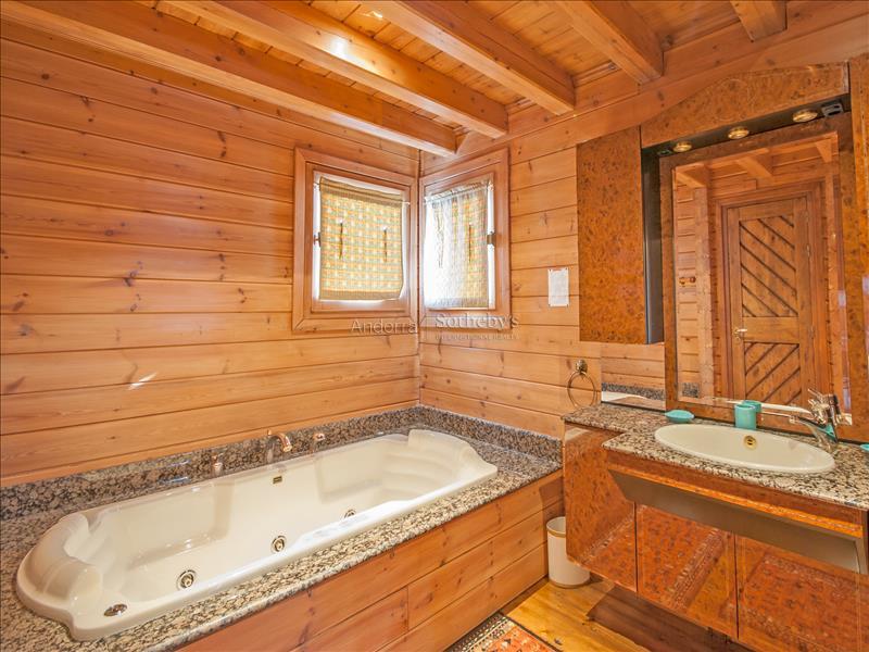 A la població de Pal (La Massana), es troba un típic xalet de muntanya per comprar, molt proper a les pistes d'esquí de Pal i Arinsal a VALLNORD, i a 1 km del camp de golf de Xixerella. Amb una superfície de 500 m² construïts, la propietat es divideix en tres pisos. A la planta baixa es troben: el garatge, amb capacitat per a 4 cotxes i amb dos grans entrades; una zona destinada a la caldera, una àrea de bugaderia i un espaiós traster. A més inclou una còmoda suite per convidats amb bany complet, la qual té una porta exterior individual. Al primer pis: se situa l'ampli saló menjador, distribuït en dos ambients definits per una imponent xemeneia de muntanya feta amb pedra del país i construïda de manera artesana. Al costat del menjador, la cuina de tipus americana disposa d'electrodomèstics d'alta gamma i múltiples espais de treball tant per al servei diari de menjars com a zones d'oci i descans. Tant el saló com la cuina gaudeixen d'accés a la terrassa a la qual segueix el jardí. Una suite amb bany, una espaiosa habitació doble i un lavabo de cortesia completen la distribució de la primera planta. Al segon pis: es troba la suite presidencial de 80 m² amb la seva acollidora llar de foc, bany equipat amb banyera hidromassatge i el seu espaiós vestidor incorporat. També està disponible la sortida a una terrassa privada de 10 m² des de la qual es pot gaudir la bellesa del paisatge. En el mateix pis, es troba un apartament tipus loft completament independent amb saló, cuina oberta i equipada, habitació doble, safareig i porta a l'exterior. Totes les habitacions disposen d'armaris encastats. La decoració de la casa és d'estil rústic i cada element està en perfecta sintonia amb el magnífic entorn d'alta muntanya que envolta la propietat. Aquest xalet amaga detalls exclusius: tant les aixetes dels banys com la de la cuina són de la marca Rolex i estan banyades en or; tot la rajola de la casa, el sòl i les parets estan fets a mà a l'estil Relais & Chateaux; i molt més. Totes les estades són exteriors i gaudeixen de la llum al llarg del dia gràcies a l'orientació del xalet. Aquesta magnífica propietat està construïda en un recinte de 900 m²; hi ha la possibilitat d'annexar-se a una altra parcel·la de terreny fent una superfície total de 2100 m², per 900.000 € més. Xalet de luxe per comprar en exclusiva zona d'Andorra, perfecte per als que gaudeixen d'interminables jornades d'esquí i fantàstics dies de golf.
