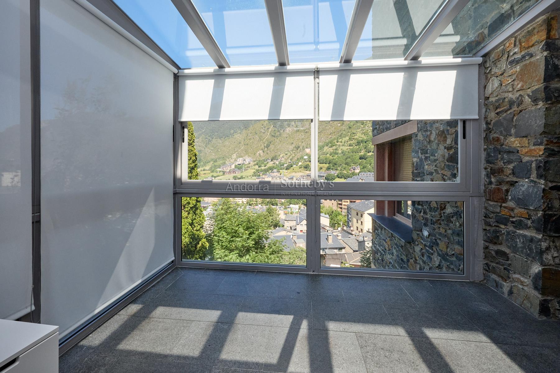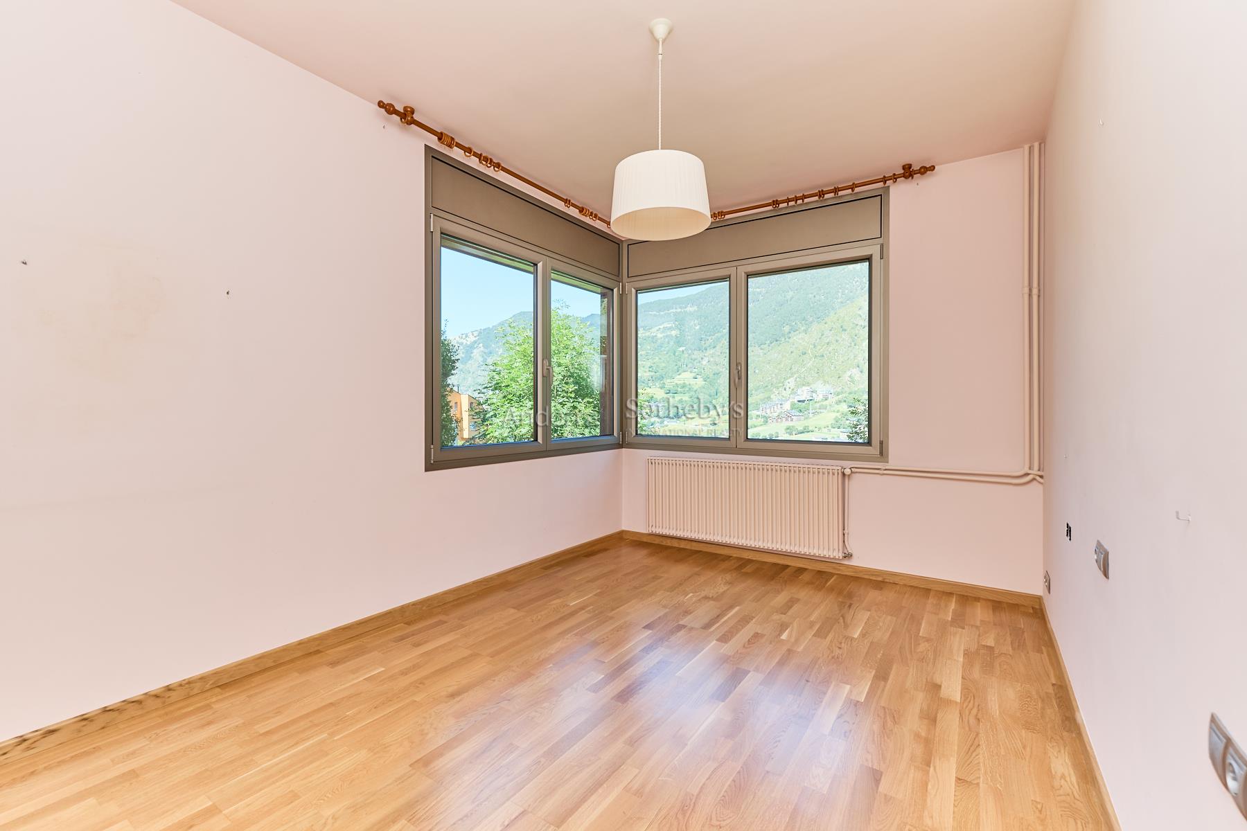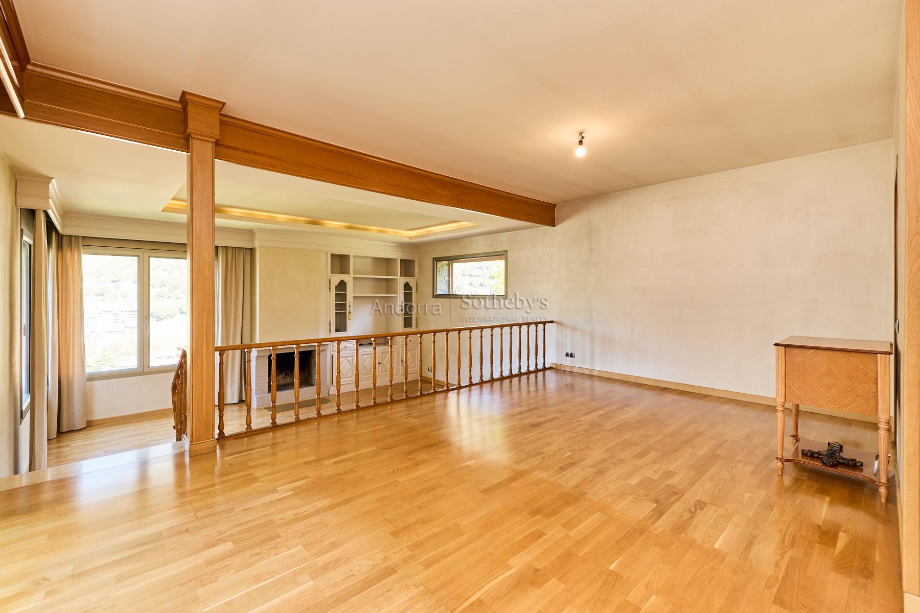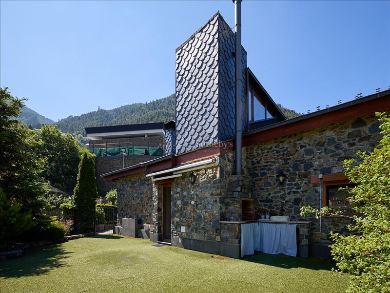 Casa en alquiler en el pueblo de Encamp, sin amueblar, situada en una tranquila zona residencial muy próxima al núcleo urbano, con todos los servicios a su alcance y fácil acceso al sector Funicamp de Encamp (Grandvalira), así como a la vía que conecta con el resto del Principado. Se trata de una propiedad totalmente reformada y completamente exterior, con una superficie aproximada de 500 m² construidos, distribuida en 4 plantas. Accedemos a la vivienda por la planta baja o a nivel de calle, de unos 135 m², a través del porche de entrada que conduce a una espectacular terraza soleada con vistas. El recibidor es amplio y distribuye hacia las distintas estancias. A la izquierda se encuentra el garaje con capacidad para 2 coches, con doble puerta automática y varios espacios de almacenamiento. Desde el garaje se accede a las buhardillas, de unos 100 m², actualmente habilitadas como sala de ocio con dos estancias adicionales y amplio espacio bajo cubierta para almacenaje. De nuevo en la planta baja, encontramos un aseo de cortesía, una amplia cocina cuadrada, totalmente exterior, equipada con ascensor que comunica todas las plantas y con acceso directo a la terraza. La cocina dispone de gran capacidad de almacenamiento, con múltiples cajoneras y armarios. Bajo la terraza se encuentra un apartamento dúplex de 2 habitaciones con terraza, actualmente alquilado y no incluido en el alquiler de la vivienda principal. Asimismo, el huerto de la propiedad también se encuentra alquilado y no forma parte del alquiler. En esta misma planta se ubica el despacho, con acceso a un solárium con excelentes vistas sobre el Valle de Encamp. El salón-comedor se distribuye en dos niveles, diferenciando la zona de comedor de la zona de estar, con grandes ventanales que aportan mucha luz natural. Dispone de chimenea de leña y una ventana panorámica con vistas a Sant Romà de les Bons. En la planta -1, de unos 130 m², se encuentra la zona de noche, formada por 4 habitaciones dobles, una de ellas máster suite, con vestidor, baño completo con ducha y acceso directo al jardín. Las otras tres amplias habitaciones, una con armarios empotrados, comparten un pasillo con gran capacidad de almacenamiento mediante armarios empotrados a lo largo de toda la pared. En esta planta también hay un baño completo independiente con ducha, una sala de plancha y lavadero, y la sala técnica de la calefacción. La planta -2, de unos 85 m², está habilitada como bodega, e incluye el cuarto de la maquinaria del ascensor, con acceso directo al jardín. Los suelos son de parquet de madera en las zonas de día, zonas comunes y habitaciones, y de gres en la cocina y los baños. Los acabados son modernos y de alta calidad, con ventanas y puertas de doble acristalamiento, incluidas las de balcones y terrazas, y todas las persianas son eléctricas. La calefacción funciona con gasoil, con un depósito de 4.000 litros. La vivienda se alquila sin amueblar, exclusivamente con la casa principal y el jardín, dentro de una parcela total de unos 600 m², lo que la convierte en una excelente oportunidad en una ubicación céntrica y a la vez muy tranquila.