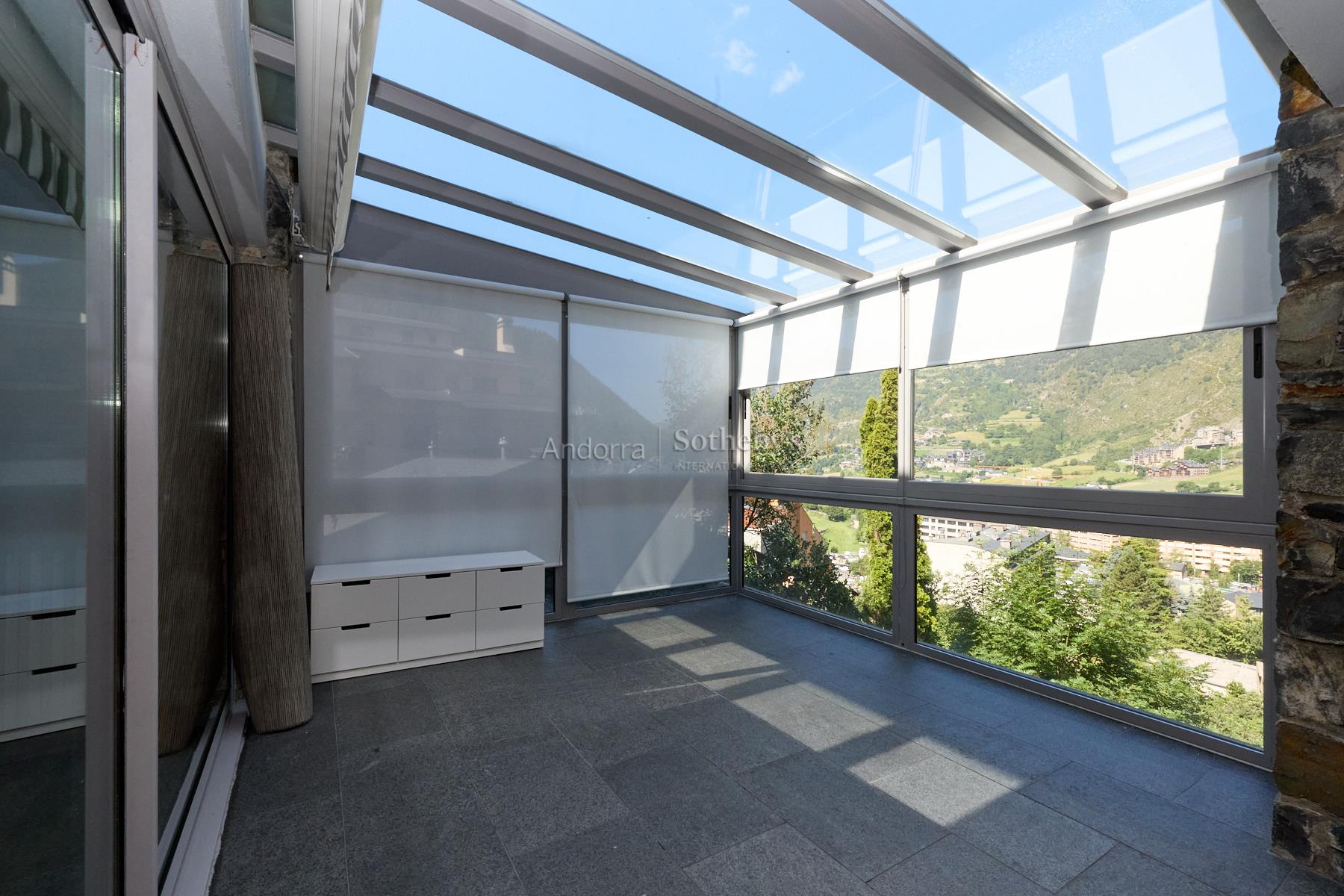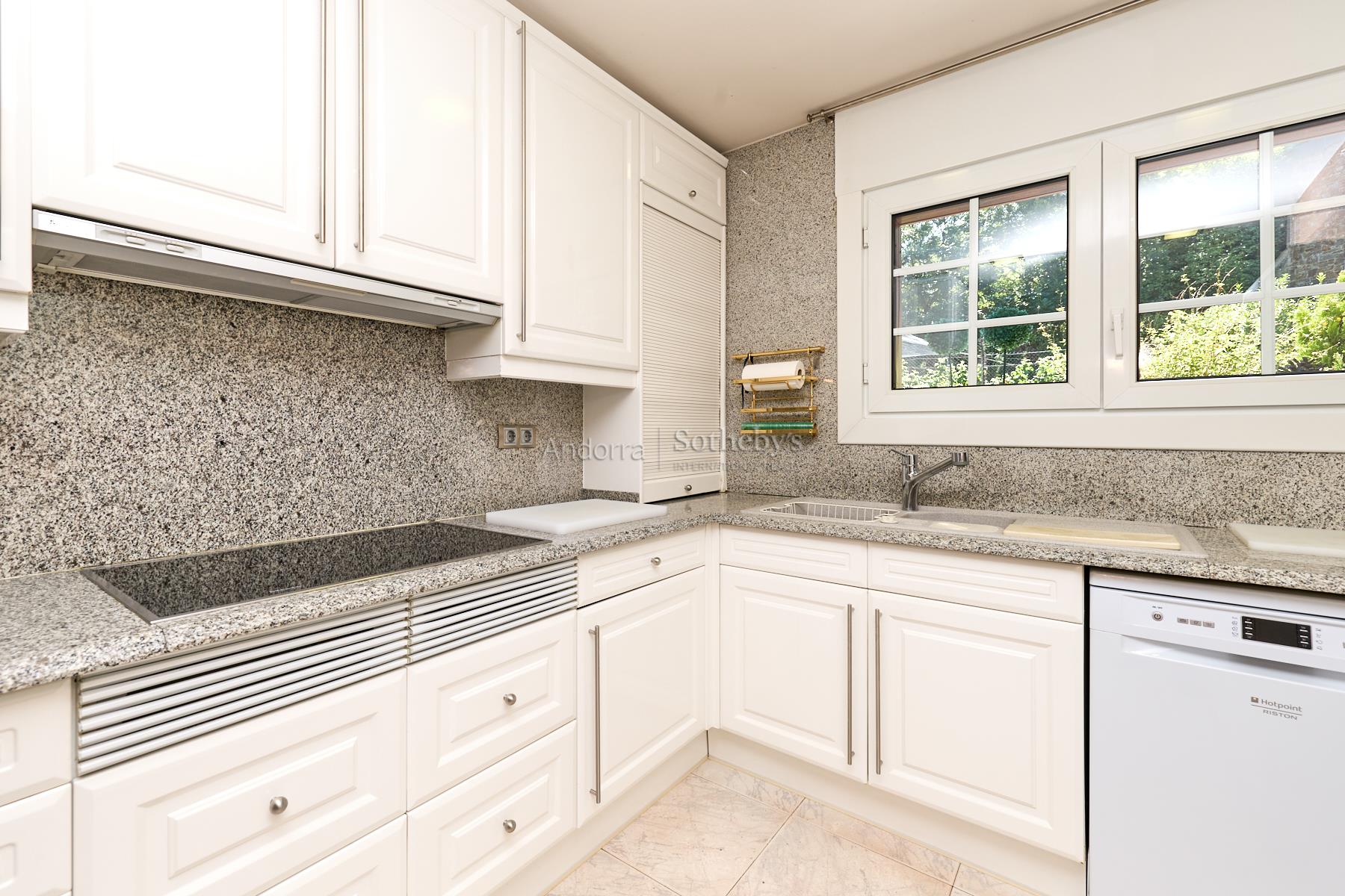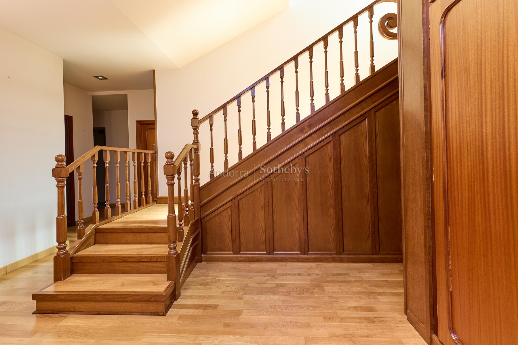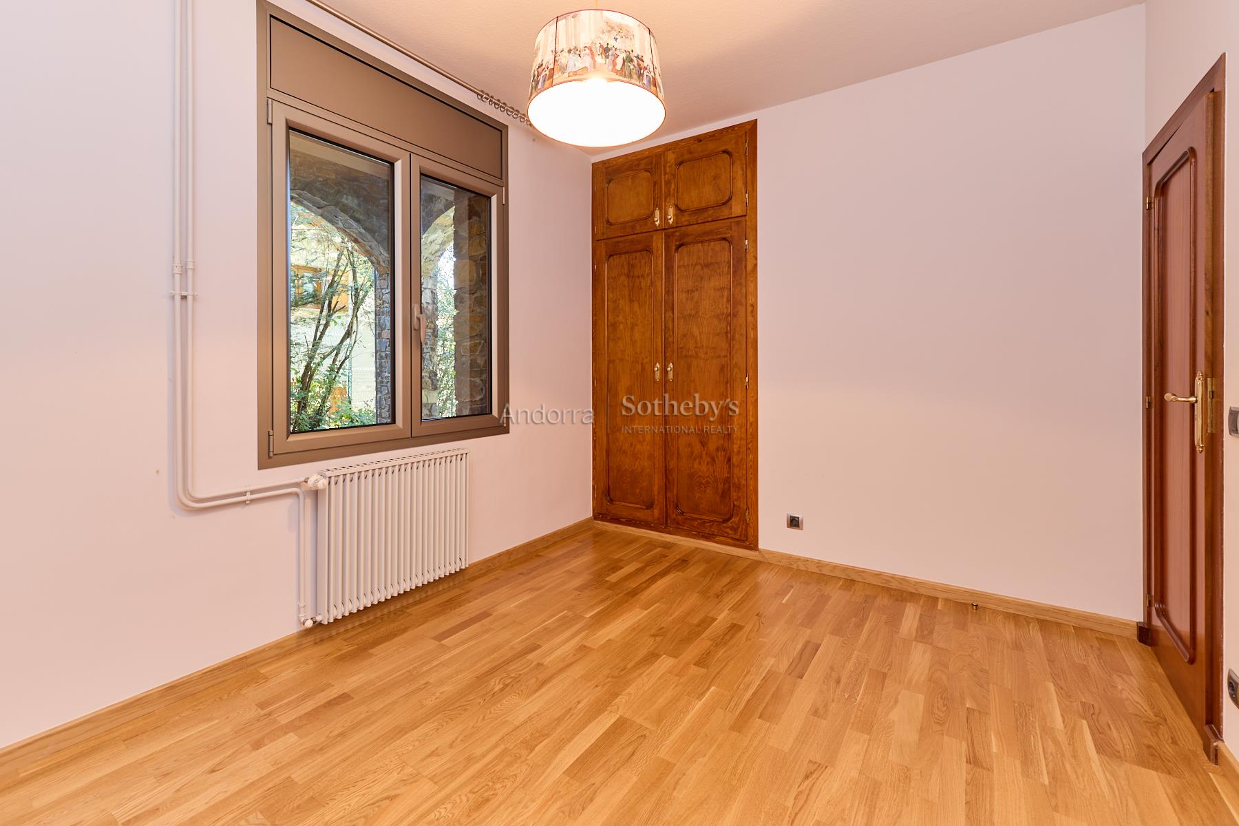 Casa en alquiler en el pueblo de Encamp, sin amueblar, situada en una tranquila zona residencial muy próxima al núcleo urbano, con todos los servicios a su alcance y fácil acceso al sector Funicamp de Encamp (Grandvalira), así como a la vía que conecta con el resto del Principado. Se trata de una propiedad totalmente reformada y completamente exterior, con una superficie aproximada de 500 m² construidos, distribuida en 4 plantas. Accedemos a la vivienda por la planta baja o a nivel de calle, de unos 135 m², a través del porche de entrada que conduce a una espectacular terraza soleada con vistas. El recibidor es amplio y distribuye hacia las distintas estancias. A la izquierda se encuentra el garaje con capacidad para 2 coches, con doble puerta automática y varios espacios de almacenamiento. Desde el garaje se accede a las buhardillas, de unos 100 m², actualmente habilitadas como sala de ocio con dos estancias adicionales y amplio espacio bajo cubierta para almacenaje. De nuevo en la planta baja, encontramos un aseo de cortesía, una amplia cocina cuadrada, totalmente exterior, equipada con ascensor que comunica todas las plantas y con acceso directo a la terraza. La cocina dispone de gran capacidad de almacenamiento, con múltiples cajoneras y armarios. Bajo la terraza se encuentra un apartamento dúplex de 2 habitaciones con terraza, actualmente alquilado y no incluido en el alquiler de la vivienda principal. Asimismo, el huerto de la propiedad también se encuentra alquilado y no forma parte del alquiler. En esta misma planta se ubica el despacho, con acceso a un solárium con excelentes vistas sobre el Valle de Encamp. El salón-comedor se distribuye en dos niveles, diferenciando la zona de comedor de la zona de estar, con grandes ventanales que aportan mucha luz natural. Dispone de chimenea de leña y una ventana panorámica con vistas a Sant Romà de les Bons. En la planta -1, de unos 130 m², se encuentra la zona de noche, formada por 4 habitaciones dobles, una de ellas máster suite, con vestidor, baño completo con ducha y acceso directo al jardín. Las otras tres amplias habitaciones, una con armarios empotrados, comparten un pasillo con gran capacidad de almacenamiento mediante armarios empotrados a lo largo de toda la pared. En esta planta también hay un baño completo independiente con ducha, una sala de plancha y lavadero, y la sala técnica de la calefacción. La planta -2, de unos 85 m², está habilitada como bodega, e incluye el cuarto de la maquinaria del ascensor, con acceso directo al jardín. Los suelos son de parquet de madera en las zonas de día, zonas comunes y habitaciones, y de gres en la cocina y los baños. Los acabados son modernos y de alta calidad, con ventanas y puertas de doble acristalamiento, incluidas las de balcones y terrazas, y todas las persianas son eléctricas. La calefacción funciona con gasoil, con un depósito de 4.000 litros. La vivienda se alquila sin amueblar, exclusivamente con la casa principal y el jardín, dentro de una parcela total de unos 600 m², lo que la convierte en una excelente oportunidad en una ubicación céntrica y a la vez muy tranquila.