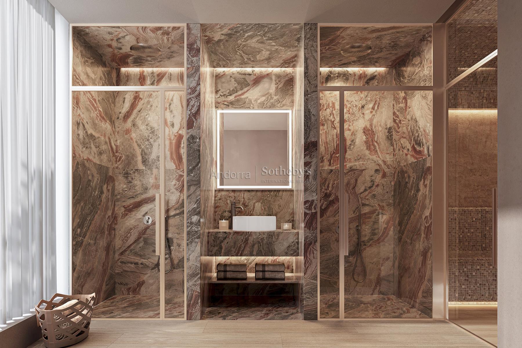 Descubre este espectacular chalet adosado de nueva construcción situado en Can Diumenge, Escaldes-Engordany. Esta residencia de gran lujo cuenta con una superficie total de 1001 m2, incluyendo 368 m2 de terrazas, jardines y porches diseñados para disfrutar de las bellas vistas y al aire libre. Con un diseño arquitectónico elegante, el chalet se distribuye en cinco plantas, incluyendo un sótano y un semisótano que ofrecen espacios amplios y funcionales. En la planta principal, encontrará un ambiente abierto que integra el salón, comedor y cocina, con acceso directo a la terraza y jardín. Esta misma planta dispone de un aseo, un vestuario y un práctico espacio de lavandería. Las plantas dedicadas al descanso albergan tres habitaciones en suite, una de ellas tiene acceso al exterior, ubicadas en el primer piso. En la segunda planta se encuentra una majestuosa master suite con vestidor, baño y una terraza privada que proporciona un espacio íntimo y confortable. El sótano es un verdadero oasis de relajación y bienestar, con un área de Spa que incluye hammam, sauna seca, sala de yoga, gimnasio, piscina y jacuzzi. También disponemos de un vestidor con ducha y un aseo para la máxima comodidad. En la planta sótano -2, existe un amplio garaje con capacidad hasta seis vehículos, una habitación de almacén, un vestuario adicional, la sala técnica y un acceso conveniente a la vivienda. Con una estimación de fin de obra prevista para el tercer trimestre de 2028, ésta es una oportunidad única para disfrutar de un atajo de vida de lujo en un entorno tranquilo y privilegiado. No te pierdas esta oportunidad de conseguir tu nuevo hogar en Can Diumenge.Características