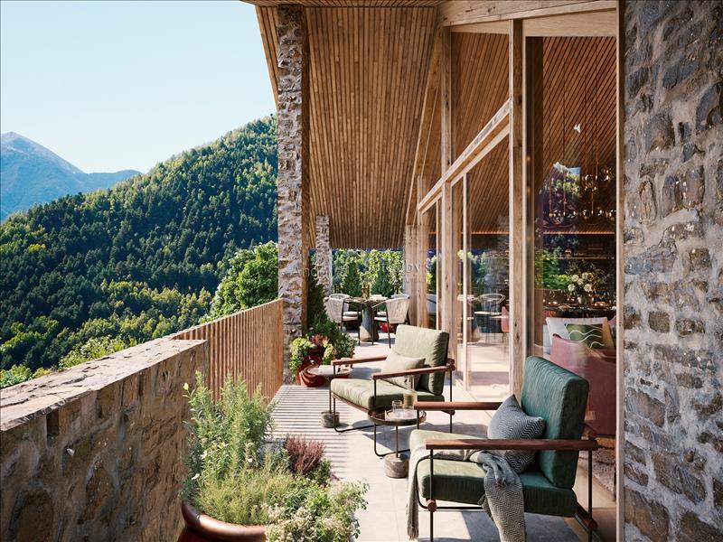Descubra “Les Llars de la Font”, un conjunto residencial situado en el corazón del centro histórico de Sispony, Andorra. Esta oferta exclusiva incluye tres elegantes casas de nueva construcción que armonizan el lujo contemporáneo con la rica tradición del Pirineo. Con amplios espacios llenos de luz natural y vistas panorámicas, sus interiores han sido diseñados con una cuidada selección de materiales locales, garantizando una conexión auténtica con el entorno. Las casas se alzan frente a los verdes campos de tabaco, con el campanario de Sant Joan como telón de fondo, en una de las zonas con más horas de sol de todo el valle. Los residentes podrán disfrutar de espectaculares vistas al Pic del Casamanya, así como de un confort y diseño exquisitos. Cada casa consta de cuatro plantas. Esta, de 559 m² construidos, ofrece 348 m² útiles y 105 m² de terrazas, además de un jardín comunitario de 384 m². En la planta baja encontrará una acogedora sala-comedor con chimenea y acceso a la terraza, junto con una cocina integrada equipada con electrodomésticos de alta gama, incluyendo placa de inducción, horno de vapor y nevera americana, así como un aseo de cortesía. La planta -1 alberga tres habitaciones en suite con acceso a terraza. En la planta -2 se pueden elegir dos opciones de master suite con vestidor y baño privado, ambas con terraza privada. Todos los baños cuentan con espejos antivaho y toalleros eléctricos. Finalmente, la planta -3 está destinada a un amplio garaje con capacidad para cuatro coches, preinstalación para carga de vehículo eléctrico, soporte para bicicletas con punto de carga y guardaesquís. Un ascensor silencioso de cuatro plazas conecta todas las plantas. Los acabados reflejan la máxima calidad, con fachadas de piedra natural local, suelo de tarima de roble y gres porcelánico en escaleras y baños. Además, dispone de un completo sistema domótico Smart Home, con iluminación LED, aerotermia, calefacción radiante y un sistema de reutilización de aguas para una sostenibilidad excepcional. No pierda la oportunidad de vivir en este proyecto inmejorable que fusiona confort, diseño y tradición en el corazón de los Pirineos.