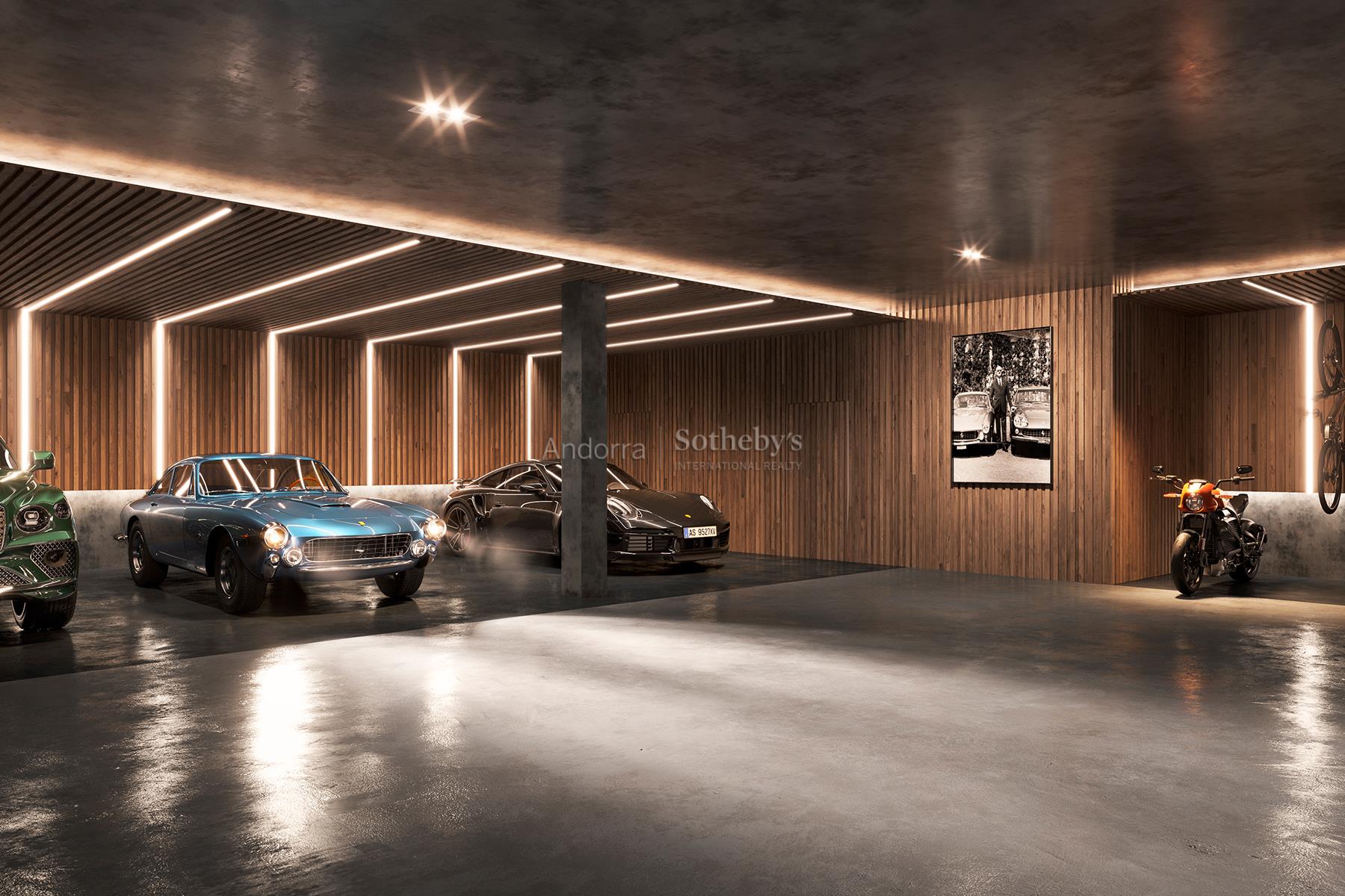 Discover "Les Llars de la Font," a residential complex located in the heart of the historic center of Sispony, Andorra. This exclusive offering includes three elegant newly built houses that harmonize contemporary luxury with the rich tradition of the Pyrenees. With spacious rooms filled with natural light and panoramic views, their interiors have been designed with a careful selection of local materials, ensuring an authentic connection with the environment. The houses rise in front of the green tobacco fields, with the bell tower of Sant Joan as a backdrop, in one of the sunniest areas of the entire valley. Residents will enjoy spectacular views of Pic del Casamanya, as well as exquisite comfort and design. Each house consists of four floors. This one has 571 m² built, offering a usable area of 353 m² and 153 m² of terraces, as well as a common garden of 384 m². On the ground floor, you will find a cozy living-dining room with a fireplace and access to the terrace, along with an integrated kitchen equipped with high-quality appliances, including an induction hob, steam oven, and American fridge, as well as a courtesy service. The -1 floor houses three en-suite bedrooms with terrace access. On the -2 floor, there are two options for master suites with walk-in closets and private bathrooms, each with a private terrace. All bathrooms feature anti-fog mirrors and electric towel rails. Finally, the -3 floor is dedicated to a spacious garage with capacity for four cars, pre-installation for electric vehicle charging, a bike rack with a charging point, and ski storage. A silent four-person elevator connects all floors. The finishes reflect the highest quality, with facades made of natural stone from the country, oak-finished wooden flooring, and porcelain stoneware in stairs and bathrooms. Additionally, it features a complete Smart Home domotic system, with LED lighting, aerothermal energy, underfloor heating, and a water reuse system for exceptional sustainability. Don't miss the opportunity to live in this unbeatable project that merges comfort, design, and tradition in the heart of the Pyrenees.Features