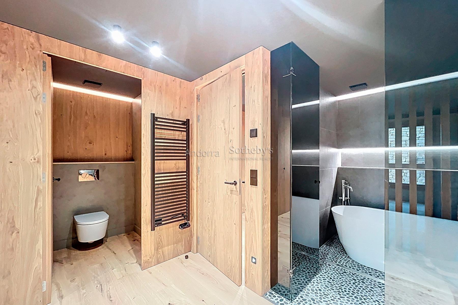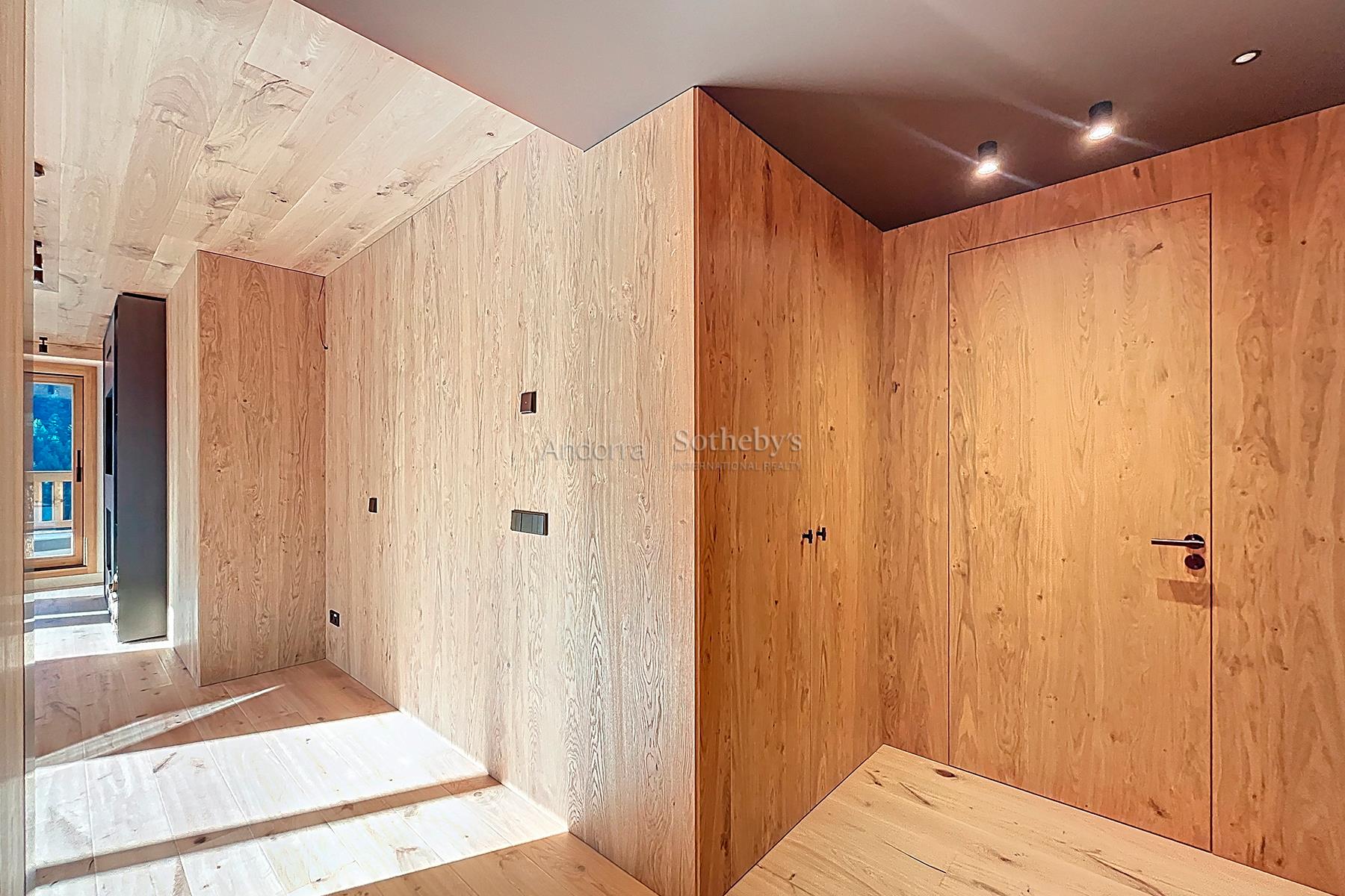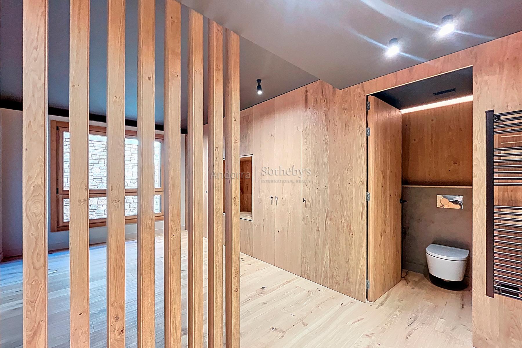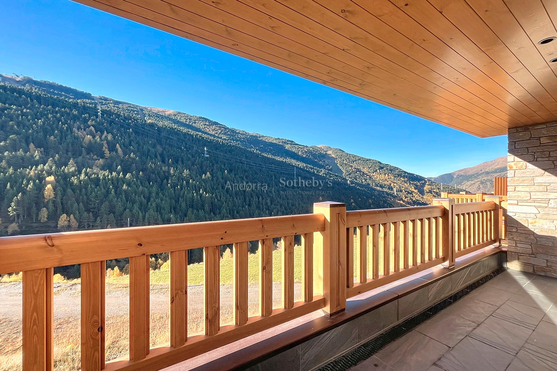 Welcome to a true luxury retreat in the heart of the majestic Pyrenees, just steps from the breathtaking ski slopes of the charming village of Soldeu. This exclusive apartment offers an unparalleled experience, where nature blends seamlessly with contemporary design, creating the perfect space for those seeking serenity and sophistication. With a meticulously designed area of 120 m², this property stands out for its structure that breathes nature, using native pine wood and local stone that harmoniously integrates into the surrounding landscape. The open-concept kitchen connects to a spacious living room, fostering memorable moments in a cozy and elegant environment. This apartment features two bedrooms, including a master suite and a double room, as well as two full bathrooms (one of them in the suite). Every corner has been thoughtfully conceived to ensure maximum comfort and functionality. The 9 m² terrace allows residents to enjoy spectacular views of the Grandvalira ski slopes and revel in the beauty of each season. Large, strategically oriented windows flood the space with natural light, immersing each room in the calm and majesty of the snowy peaks. Additionally, this magnificent apartment includes a private parking space for two vehicles, offering convenience and easy access at all times. Experience the magic of this unique space, where nature is not only observed but felt and celebrated. An exceptional place for those who wish to immerse themselves in the pure essence of mountain life in the heart of the Andorran peaks.Features