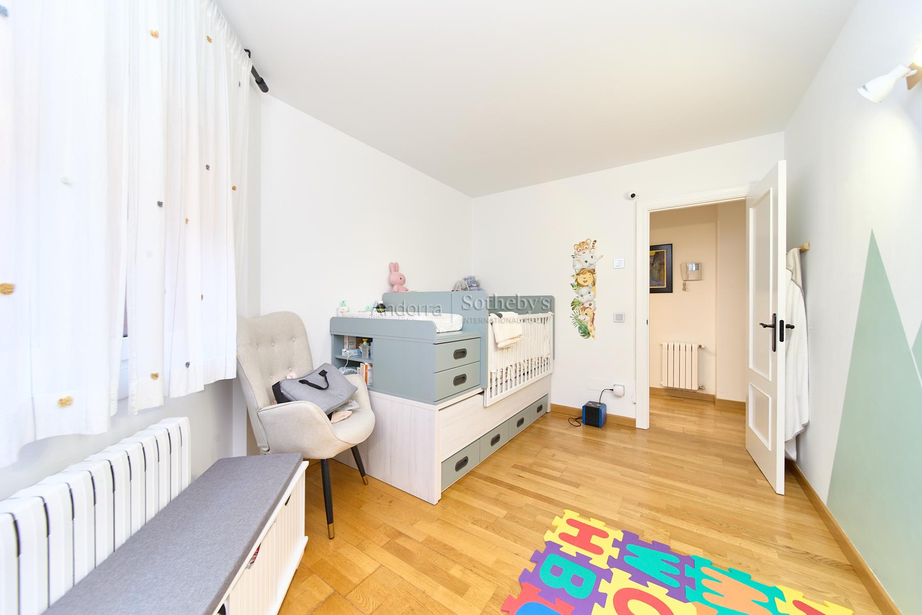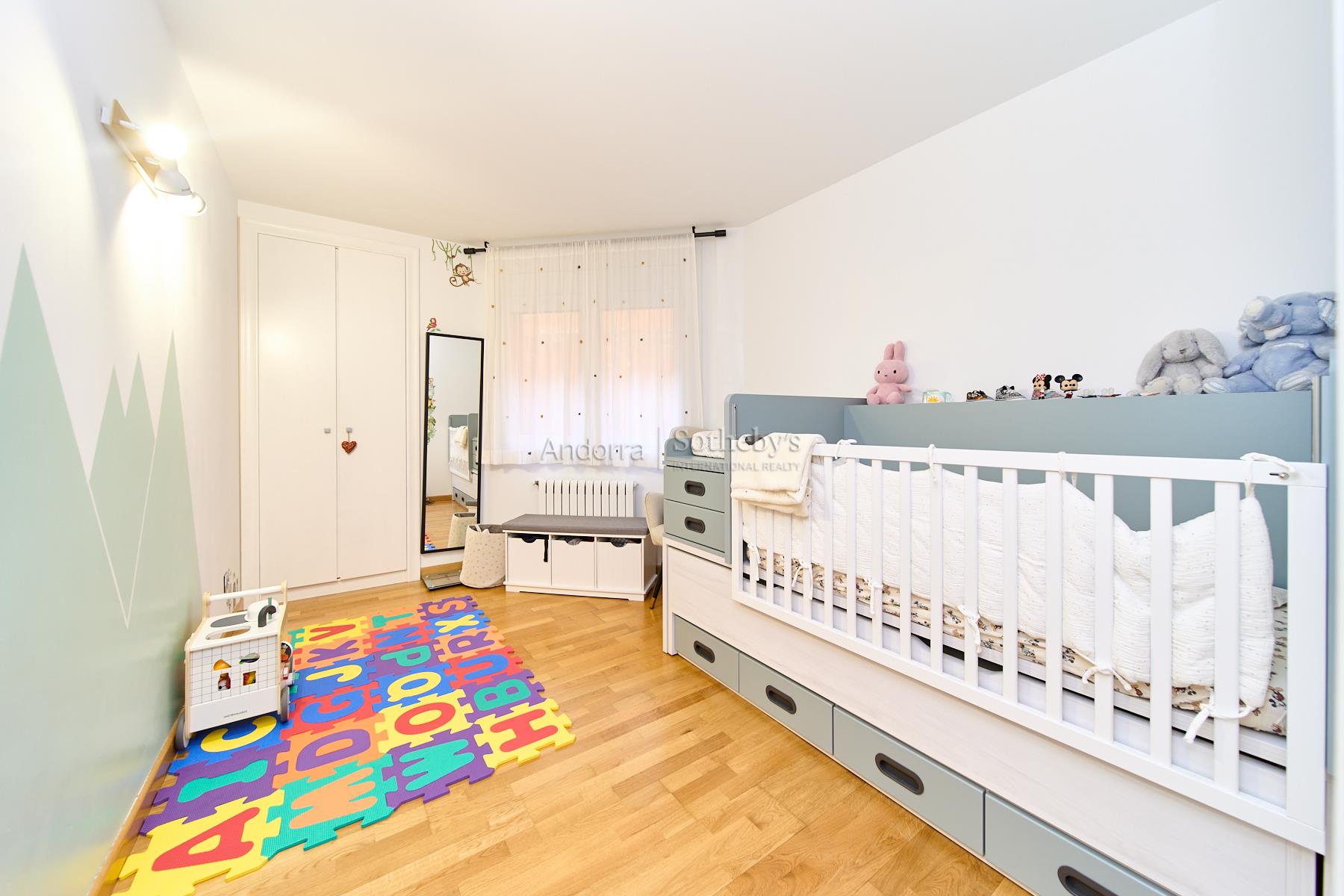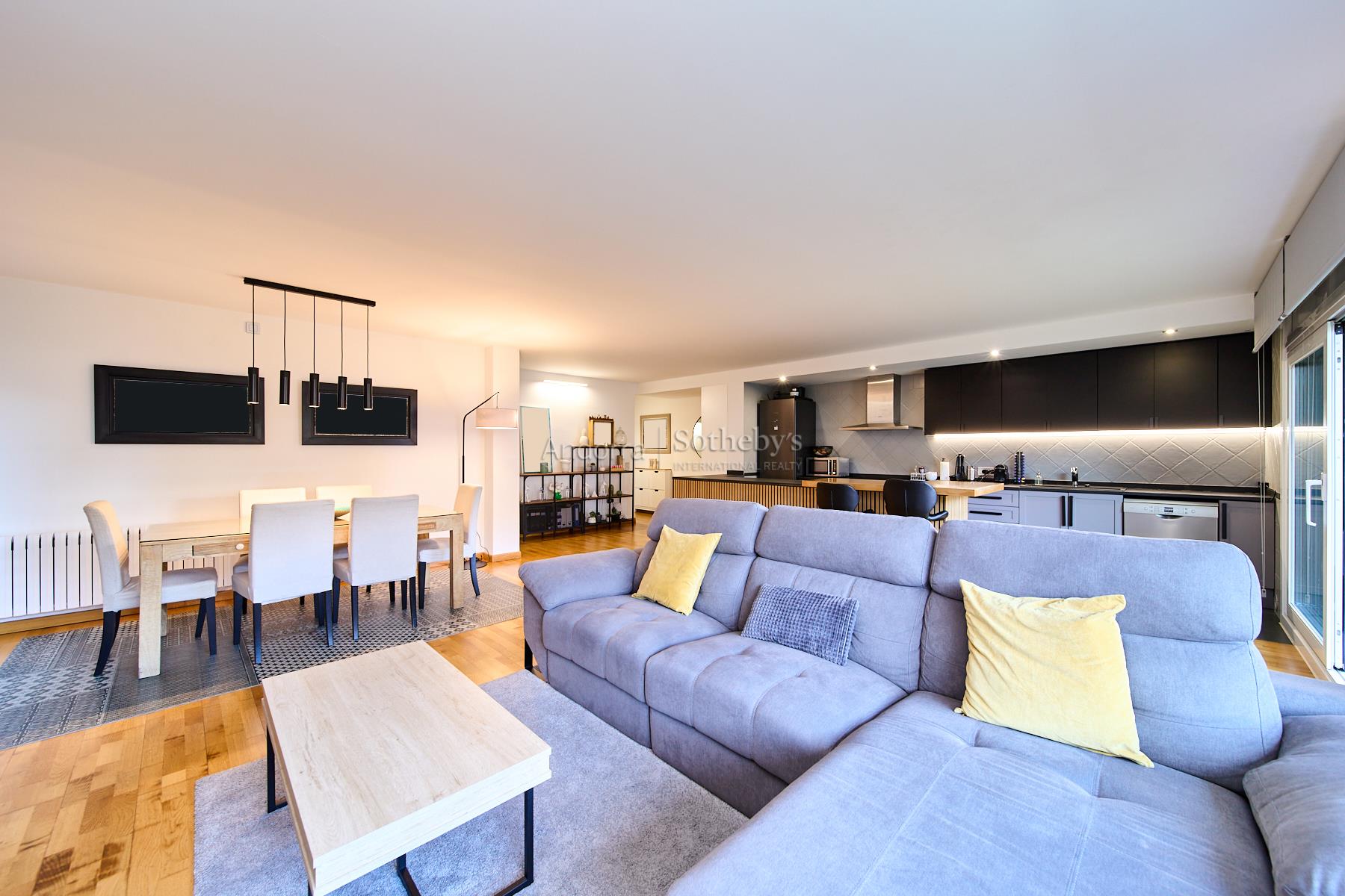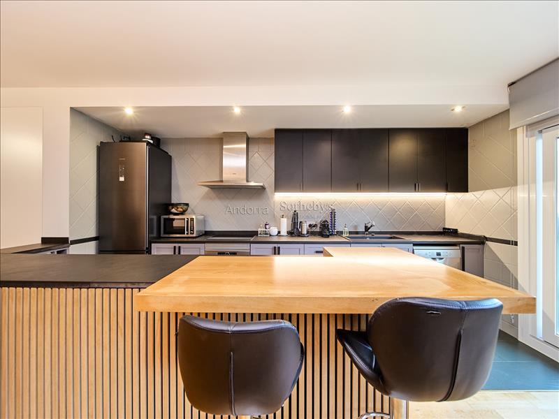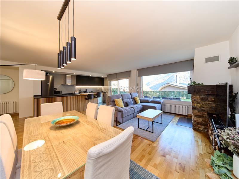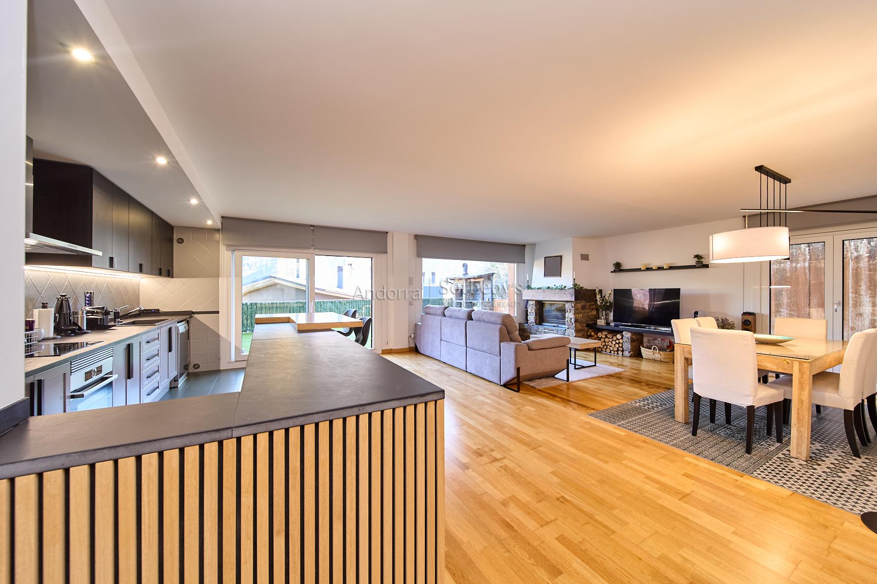 163M2 DE TERRAZA-JARDÍN + 3 HABITACIONES + 2 BAÑOS + PARKING Esta elegante planta baja, recientemente reformada, de 124 m2, para comprar, está situada en una tranquila y privada zona residencial de Ordino, rodeada de naturaleza, con fantásticas vistas panorámicas hacia el centro de la villa y las montañas que rodean entre las que destaca el majestuoso e imponente Casamanya. La propiedad está rodeada por una gran terraza-jardín de 163 m2, con césped artificial, y que disfruta de las espectaculares vistas de la zona así como de mucho sol buena parte del día gracias a su orientación Sur-Oeste. La entrada principal se realiza a través del recibidor y accede directamente a la parte de día de la propiedad que consiste de un amplio y luminoso salón-comedor con varios ventanales que le proporcionan mucha luz natural. Su anchura le permite mantener dos ambientes diferenciados, el salón junto a la chimenea y el comedor cercano a la zona donde está la cocina. La cocina abierta, está totalmente equipada con electrodomésticos integrados, toda de diseño e innovadora, dispone de mucho espacio de almacenamiento en los diversos armarios y cajones, y de una zona de mostrador para comidas informales de diario. La zona de reposo está compuesta por una gran suite, armario empotrado y un baño completo de 3 piezas con bañera-ducha y doble pica. Encontramos además una habitación doble con un armario empotrado, una gran habitación individual con armario empotrado y un baño completo independiente de 3-piezas con cabina de ducha, y zona para la lavadora. Los acabados de la propiedad son de gran calidad con, entre otros, suelos de parqué en los dormitorios, el salón-comedor, de cerámica en la cocina y en los baños, persianas eléctricas, ventanas de doble acristalamiento para un óptimo aislamiento termo- acústico y calefacción de gasoil. Para un máximo de comodidad, la propiedad dispone de una doble plaza de aparcamiento en el garaje del edificio, al que se puede acceder directamente por un ascensor privado interior, más un amplio trastero. Este elegante piso, situado en una de las zonas de Andorra más buscadas por su alta calidad de vida, es el hogar perfecto para una familia que quiere escapar del ajetreo de la ciudad y disfrutar del marco natural incomparable que ofrecen las montañas andorranas.