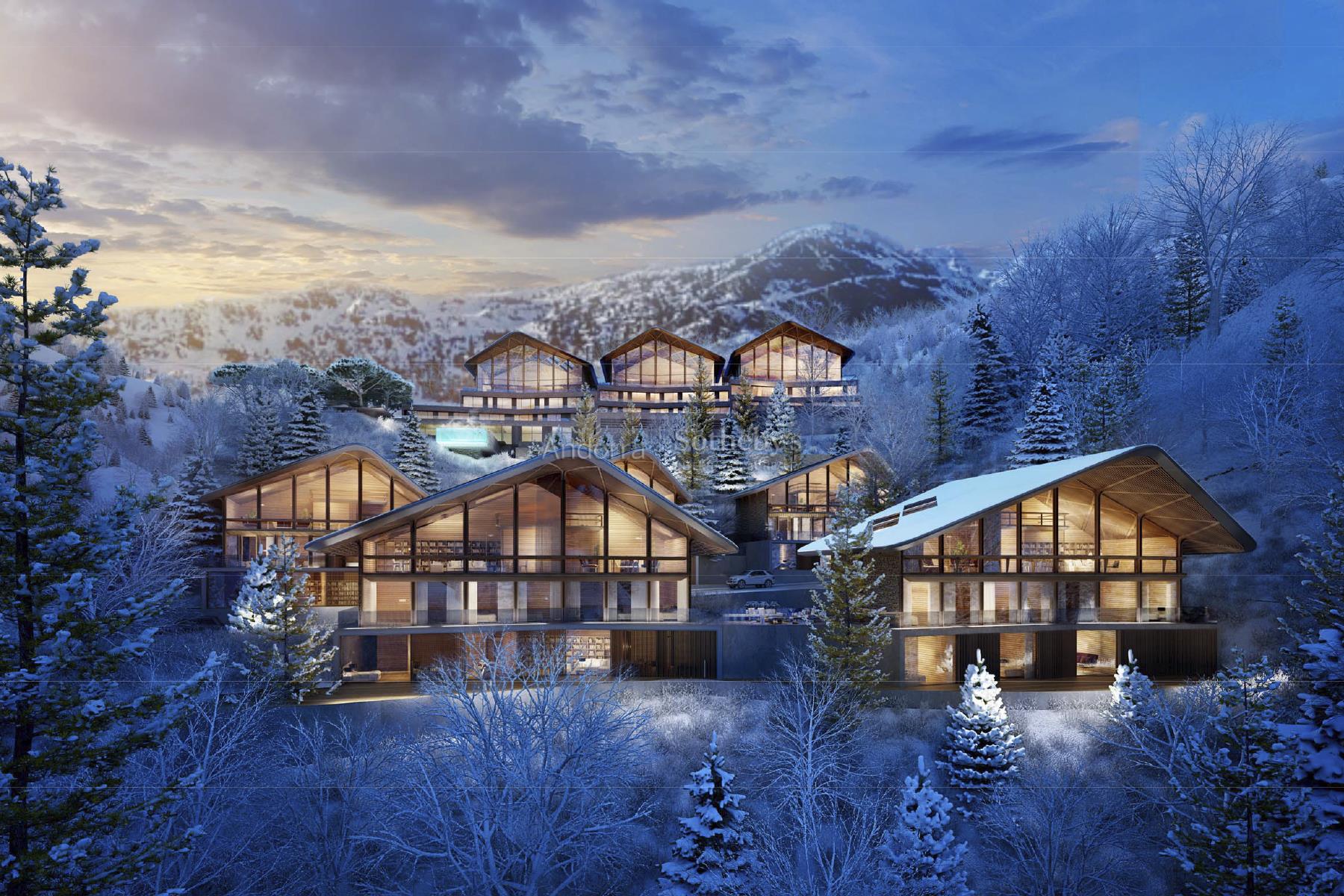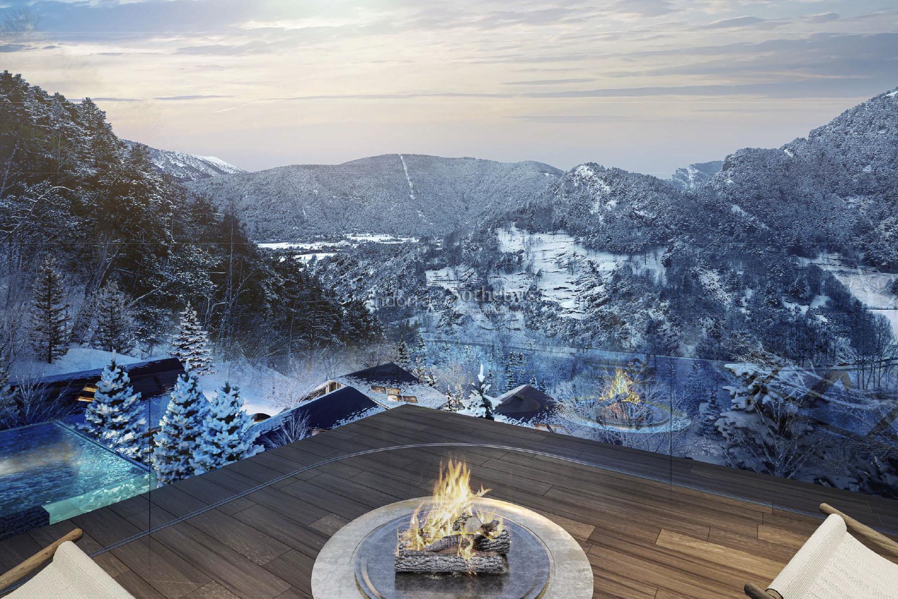 Exclusivo chalet para comprar en el encantador pueblo de Ordino, el primer destino del Principado de Andorra nombrado como Reserva de la Biosfera. Esta sensacional propiedad forma parte de una promoción de obra nueva que destaca por su privilegiada ubicación a la vez que por su lujoso diseño, ideado por el prestigioso estudio de arquitectura Rafael De la-Hoz Arquitectes. Se trata de un inmueble de nueva construcción de aproximadamente 669 m² construidos, los cuales incluyen múltiples terrazas orientadas de forma óptima para aportar la máxima exposición posible a la luz natural, y disfrutar a su vez de las magníficas vistas de Ordino y sus valles. La planta baja está destinada a la desconexión, por lo que cuenta con zona de spa y gimnasio, además de una sala de cine. En esta planta se encuentran además dos habitaciones dobles en suite con baño completo, un aseo y una zona de almacenamiento, además de una amplia terraza. En la primera planta se encuentra la continuación de la zona de descanso, con dos habitaciones en suite con baño completo, y la master suite de la propiedad, con vestidor y baño completo. Todas las habitaciones tienen salida a la terraza. La segunda planta está distribuida en una gran cocina con manzana central, equipada con las últimas tecnologías y abierta a un acogedor comedor con acceso a la terraza. En esta zona se encuentra igualmente un salón y una biblioteca, ambos espacios también con salida a la terraza, un aseo y una zona de lavandería. En la última planta, abuhardillada, se ubica un funcional despacho. la propiedad tiene 8 plazas de parquing de 11,5 m2 cada una, en total unos 706 m2 de zona de parquing. Los acabados son elegantes y de la más alta calidad, y el diseño de la propiedad combina elementos modernos, como las grandes vidrieras, con la clásica arquitectura andorrana en piedra y madera para integrarse de la mejor forma en el entorno y no perder la esencia del país.Características