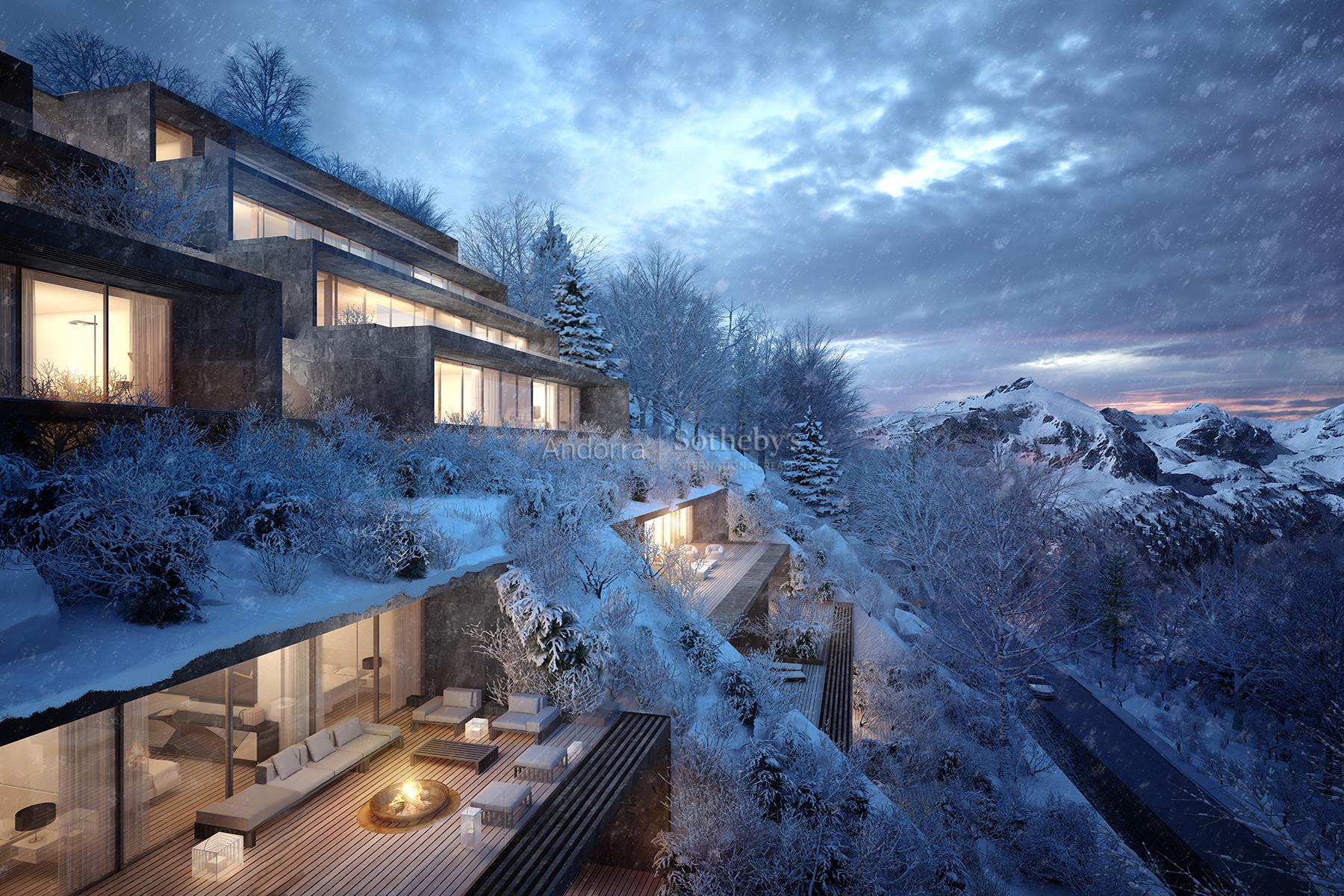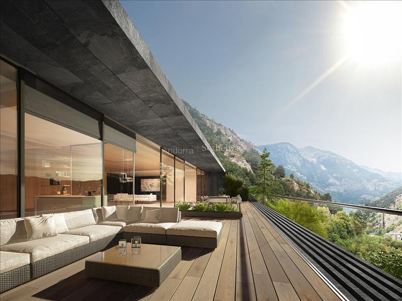Situado en el marco natural incomparable de San Miguel de Engolasters, este exclusivo piso de 328 m², por comprar, es parte de la nueva promoción, ESCALA, diseñada por el prestigioso estudio de arquitectura Rafael de la-Hoz. Este singular edificio se integra perfectamente en su entorno de montaña y gracias a su concepción abierta al exterior más su ubicación en un mirador natural excepcional, le permite incorporar a su espacio interior, mucha luz natural y las impresionantes vistas sobre Andorra la Vella y Escaldes- Engordany. Su privilegiada situación le permite, además, estar a pocos minutos de centro comercial, financiero y administrativo de Andorra, con toda su variada oferta comercial, de ocio y de servicios, así como de todos los equipamientos lúdicos y deportivos, entre otras, las estaciones de esquí y deportes de montaña del Principado: GrandValira, Vallnord Pal-Arinsal, Ordino Arcalís y Naturlandia. La propiedad cuenta con 193 m2 de superficie habitable, totalmente exterior. Todas las estancias disponen de una salida a la terraza de 110 m² desde donde podrá disfrutar todos los días del año, con la familia y los amigos, de una puesta de sol única y diferente, así como de las increíbles vistas panorámicas sobre el valle central del Principado de Andorra y los majestuosos picos que le rodean. La parte de descanso se divide en una master suite con un área de vestuario incorporada y baño completo, más dos suites con sus propios baños completos. La parte de día se compone de un fantástico espacio abierto formado por la cocina, totalmente equipada con electrodomésticos de alta gama y una lavandería anexa, un salón-comedor y un espacio destinado a una biblioteca o zona chill-out. Para su total comodidad, el piso dispone en el mismo edificio de 3 plazas de garaje y 1 trastero. Y por una relajación perfecta a finales del día, podrá disfrutar de un exclusivo Spa privado, situado en el mismo edificio, con las inspiradoras vistas sobre los valles de Andorra. Este lujoso ático, de un diseño moderno y elegante, está concebido especialmente para satisfacer todos sus deseos de confort, tranquilidad y privacidad, que sólo podrá encontrar en ESCALA, en el corazón de una de las mejores zonas residenciales del Principado de Andorra.Características