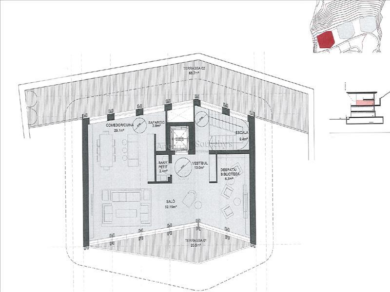 Chalet exclusif à vendre dans le charmant village d'Ordino, première destination du Principauté d'Andorre désignée comme Réserve de Biosphère. Cette propriété sensationnelle fait partie d'un nouveau développement qui se distingue par son emplacement privilégié ainsi que par son design luxueux, conçu par le prestigieux cabinet d'architecture Rafael De La-Hoz Arquitectos. C'est une propriété nouvellement construite d'environ 588 m², qui comprend plusieurs terrasses orientées de manière optimale pour offrir une exposition maximale à la lumière naturelle tout en profitant des vues magnifiques d'Ordino et de ses vallées. Le rez-de-chaussée est consacré à la détente et dispose d'une incroyable piscine intérieure avec un espace spa et un gymnase, ainsi qu'une salle de cinéma. À ce niveau, on trouve également deux chambres doubles en suite avec salle de bain complète, un toilettes invités et un espace de rangement. Au premier étage, la zone de repos se prolonge avec deux chambres en suite avec salle de bain complète, et la suite principale de la propriété, dotée d'un dressing et d'une salle de bain complète. Toutes les chambres donnent accès à la terrasse. Le deuxième étage se compose d'une grande cuisine avec un îlot central, équipée des dernières technologies, et ouverte sur une salle à manger conviviale avec accès à la terrasse. Cette zone comprend également un salon et une bibliothèque, tous deux avec accès à la terrasse, un toilettes invités, et un espace buanderie. Au dernier étage, sous le toit, se trouve un bureau fonctionnel. Les finitions sont élégantes et de la plus haute qualité, et le design de la propriété combine des éléments modernes, tels que les grandes baies vitrées, avec une architecture andorrane classique en pierre et en bois, s'intégrant ainsi parfaitement dans l'environnement tout en préservant l'essence du pays.